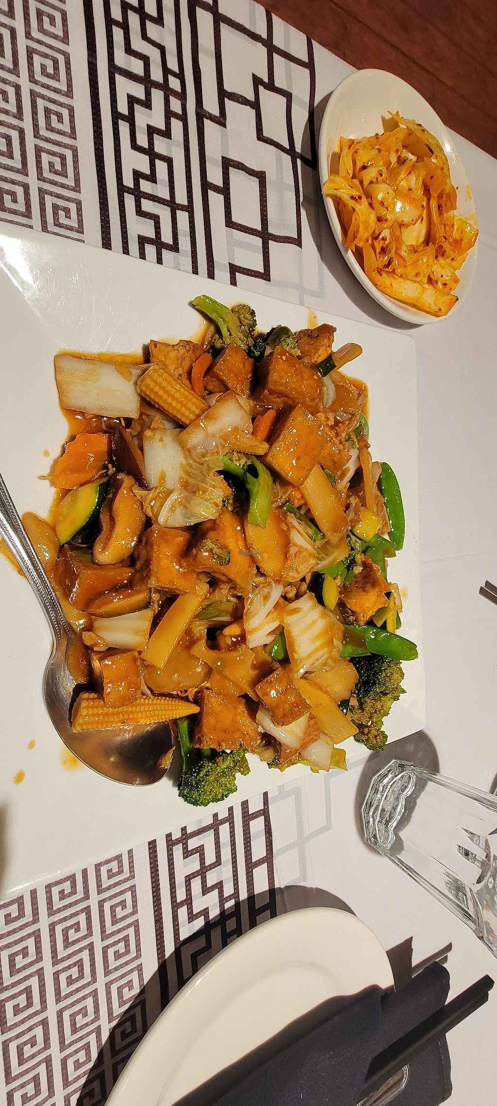Upon arrival we got hot tea and an app of spicy cabbage...stuff. We ordered sesame tofu and I tried to order the grandma fried rice (because it was spicy) but it was not vegan so they were able to make something similar. I enjoyed the tofu more and my partner preferred the rice! Would definitely go back and try more dishes!