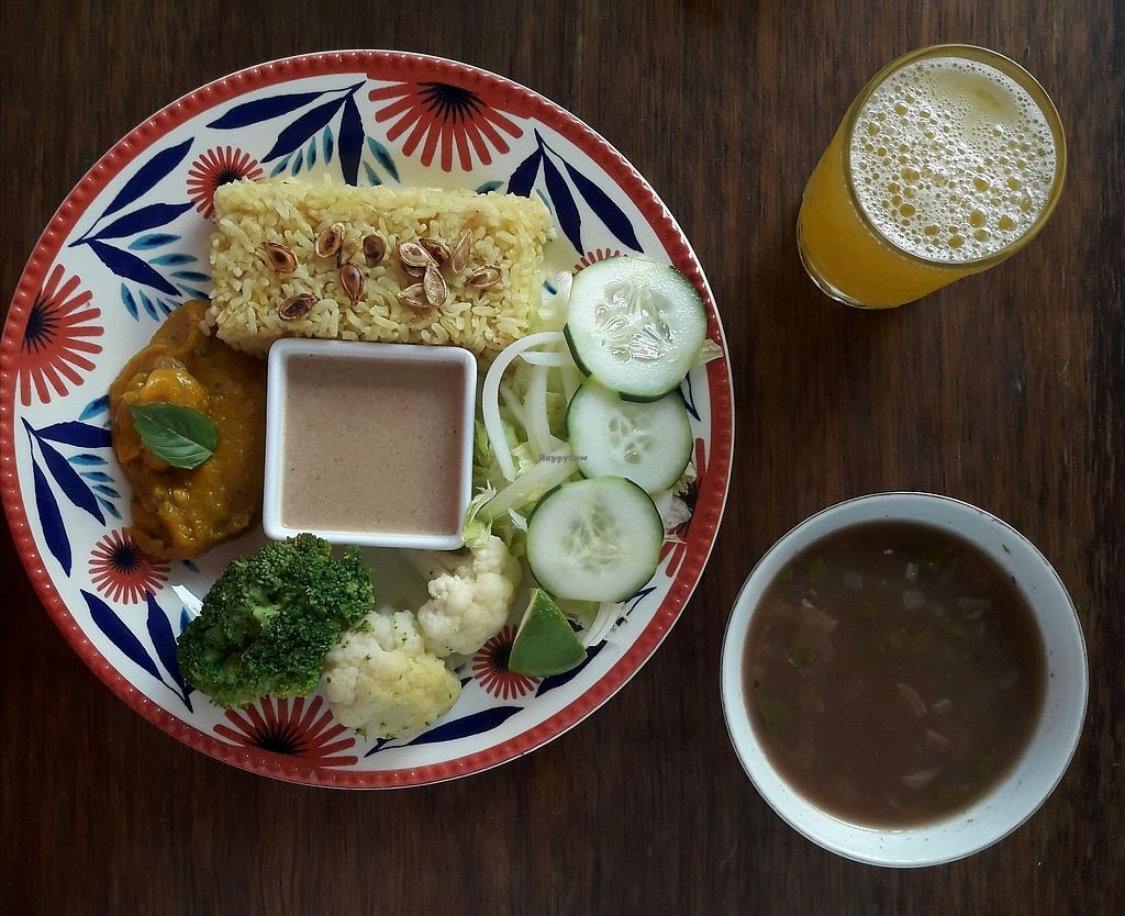 sopa de frijoles, arroz al curry, poteca de calabaza, salsa vietnamita…