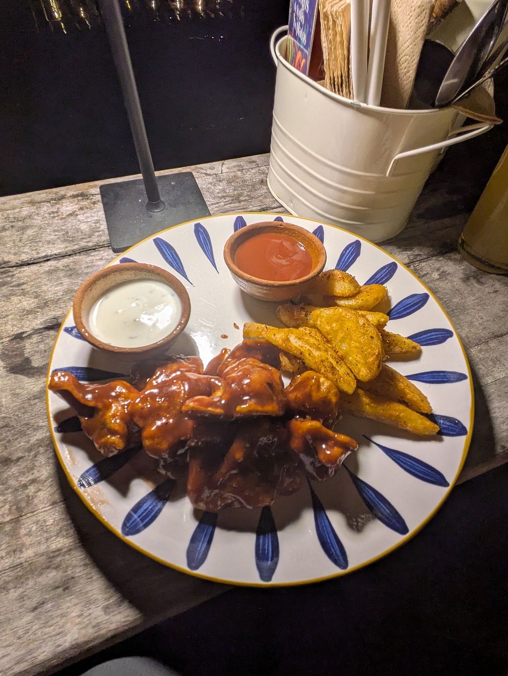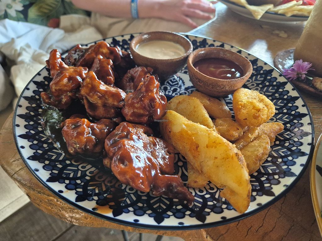Cauliflower wings and potato wedges