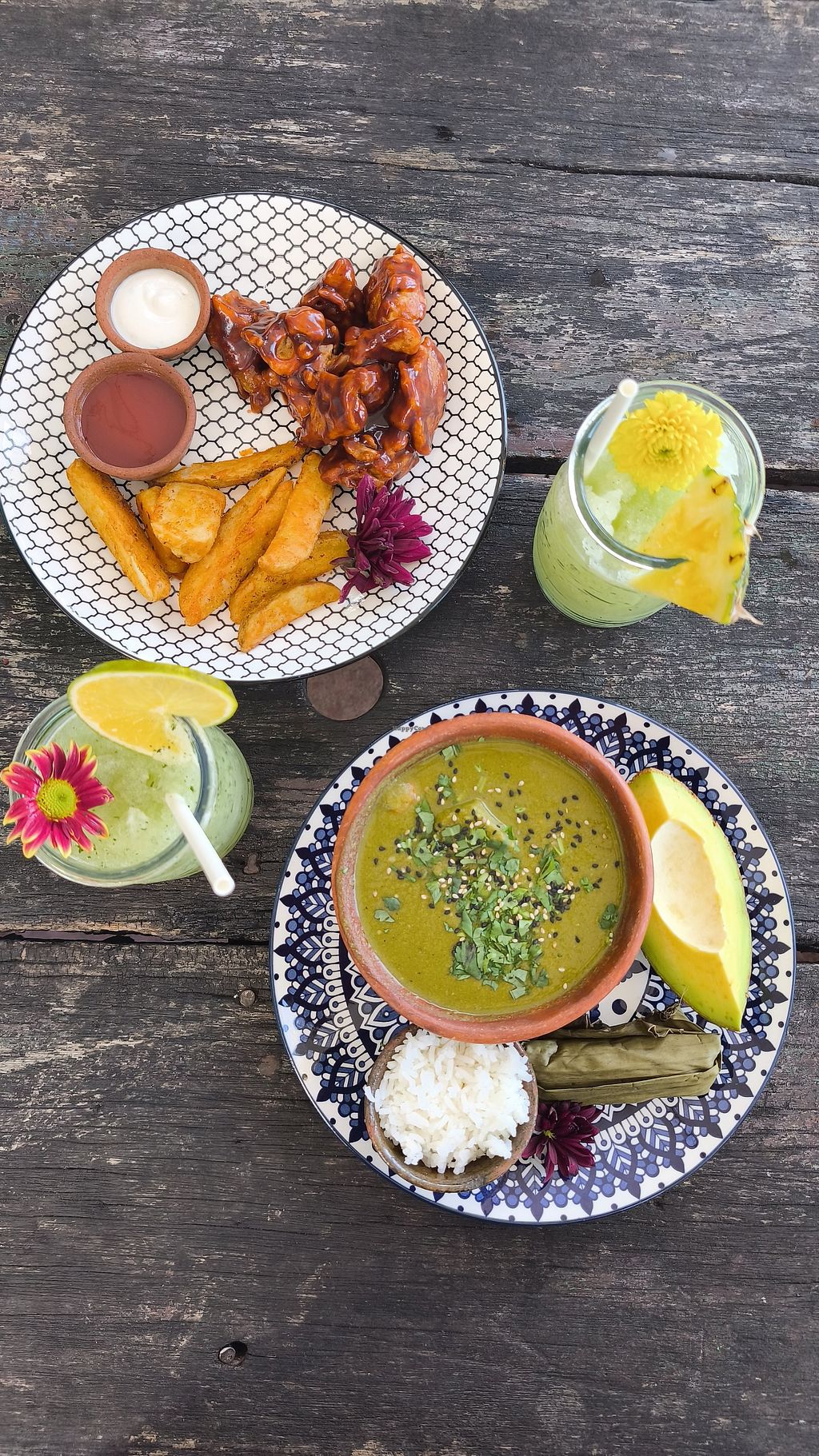 Jocon vegano y alitas de coliflor