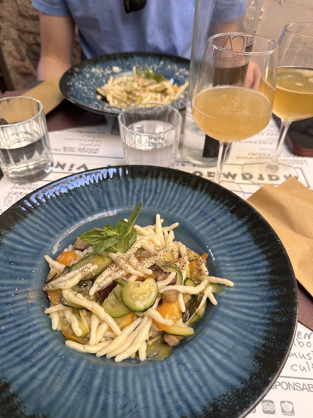 Strangozzi con zucchine e trofie con melanzane e pomodorini