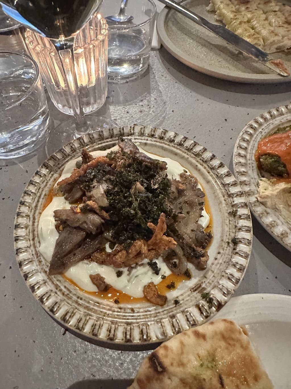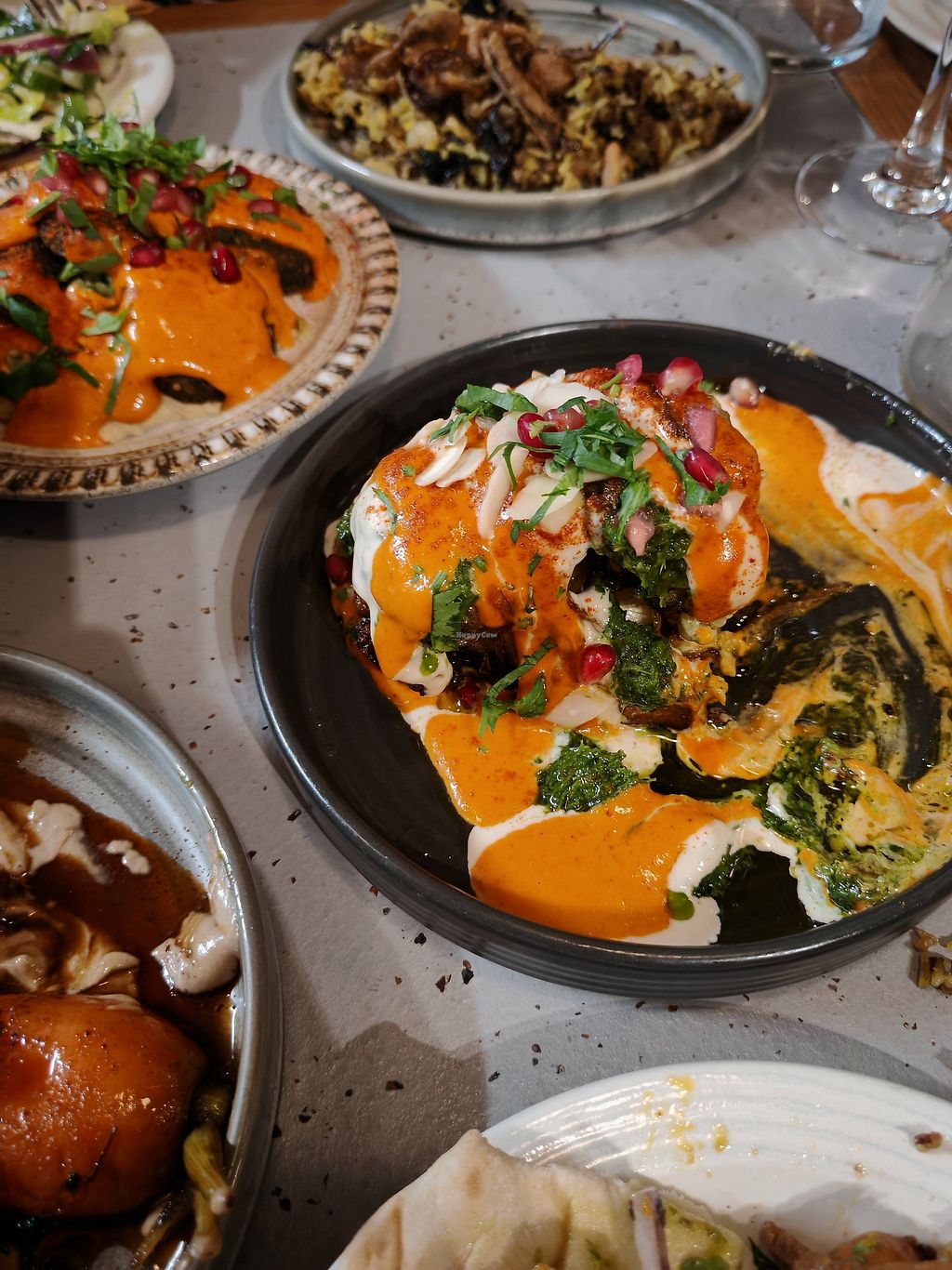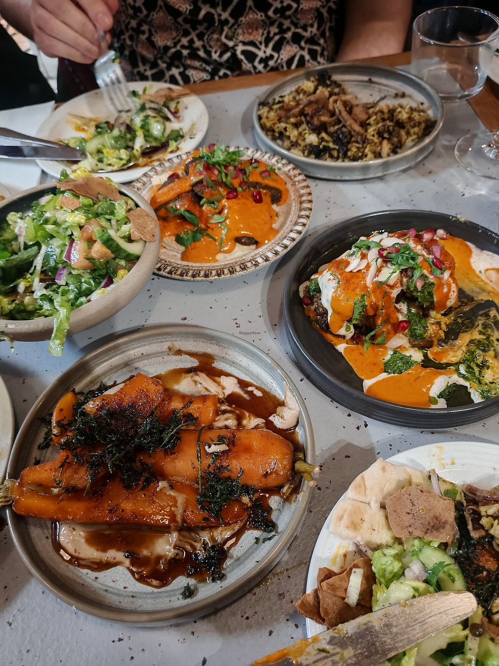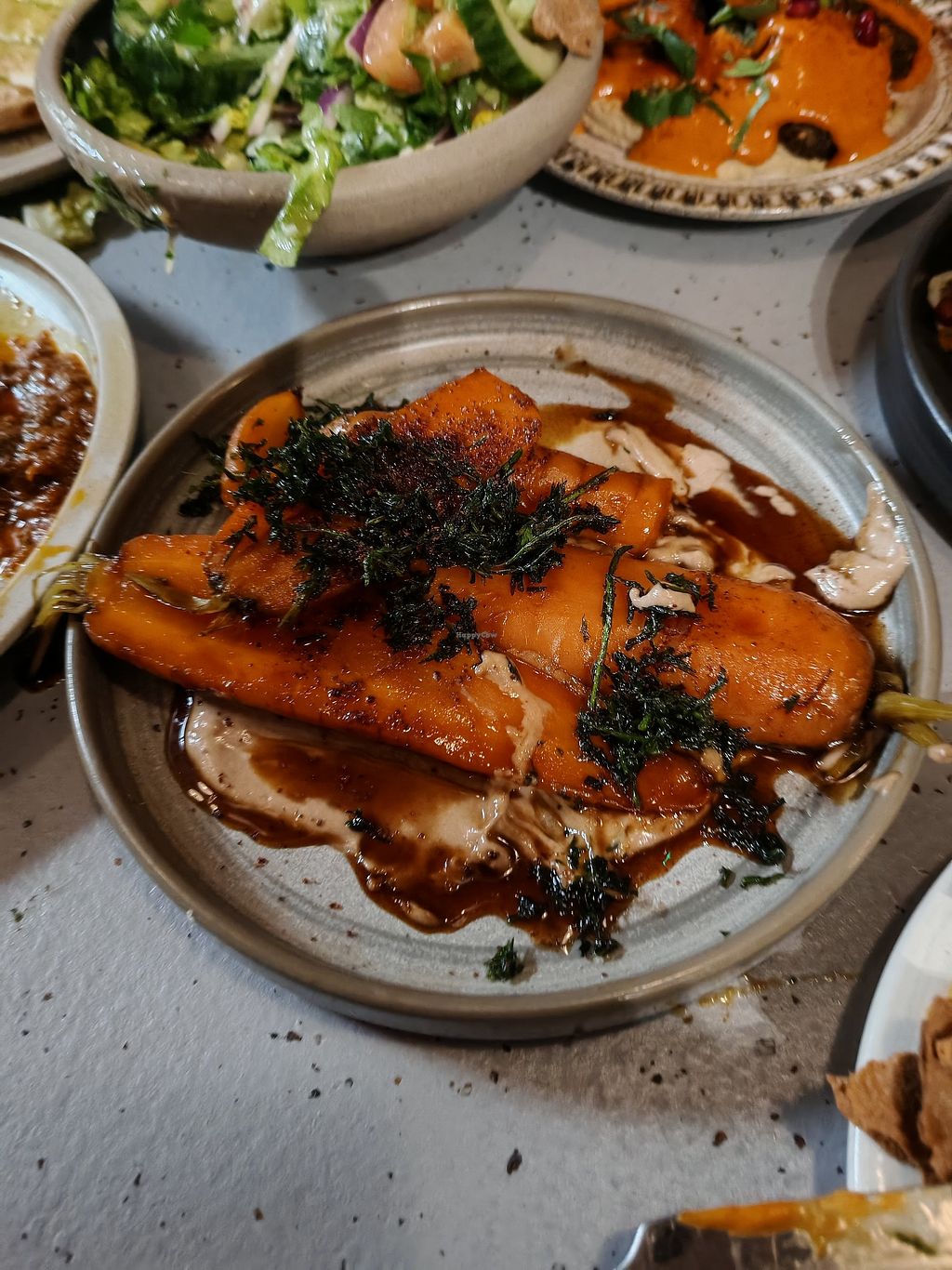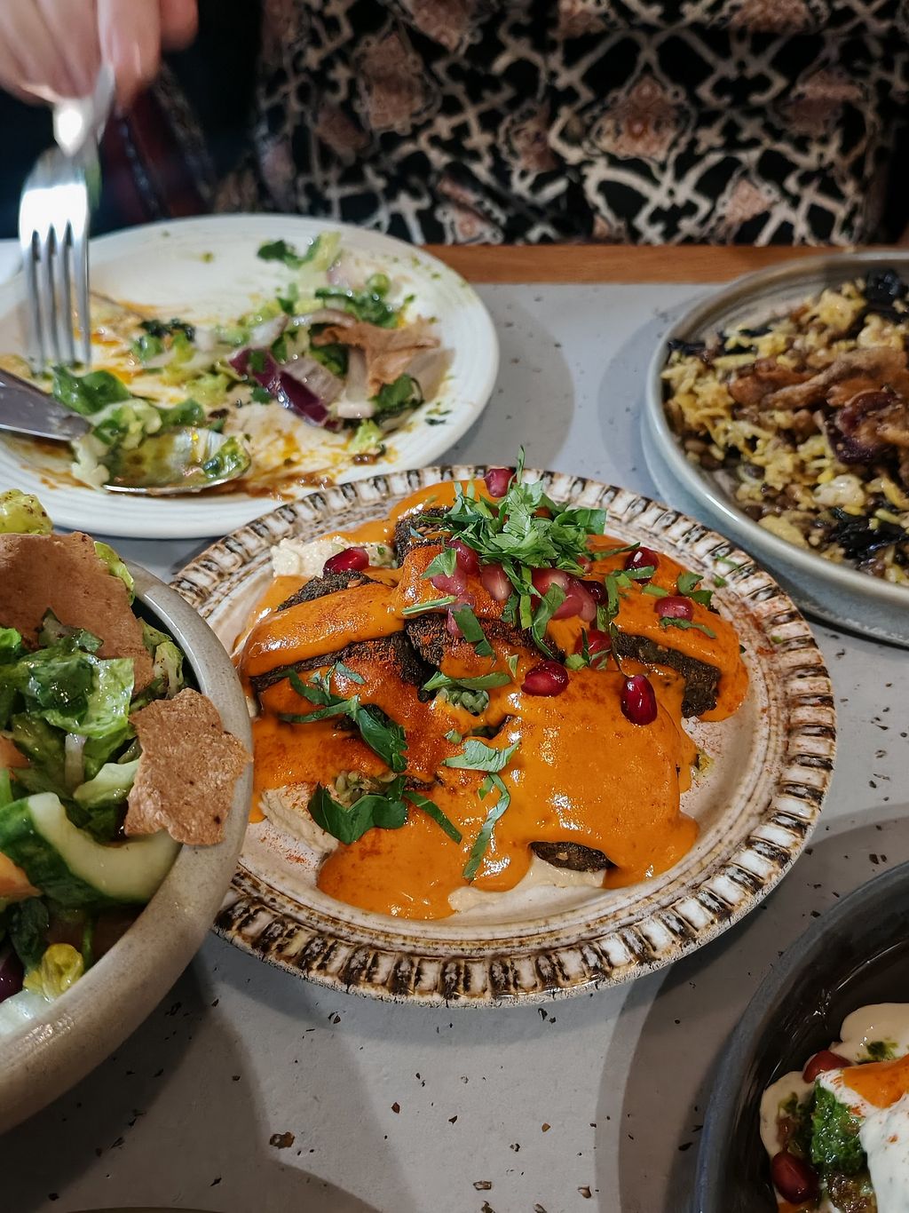 Really enjoyed the meal. Separate vegan menu which was helpful.Had sweet potato (delicious) falafel sharing platter (very good and generous serving) za’alook (nice but would have been better warm) disco caluliflower (disappointing- cauliflower was undercooked) and salted caramel ganache (absolutely fabulous). That plus an alcohol free cocktail (unusual and lovely).