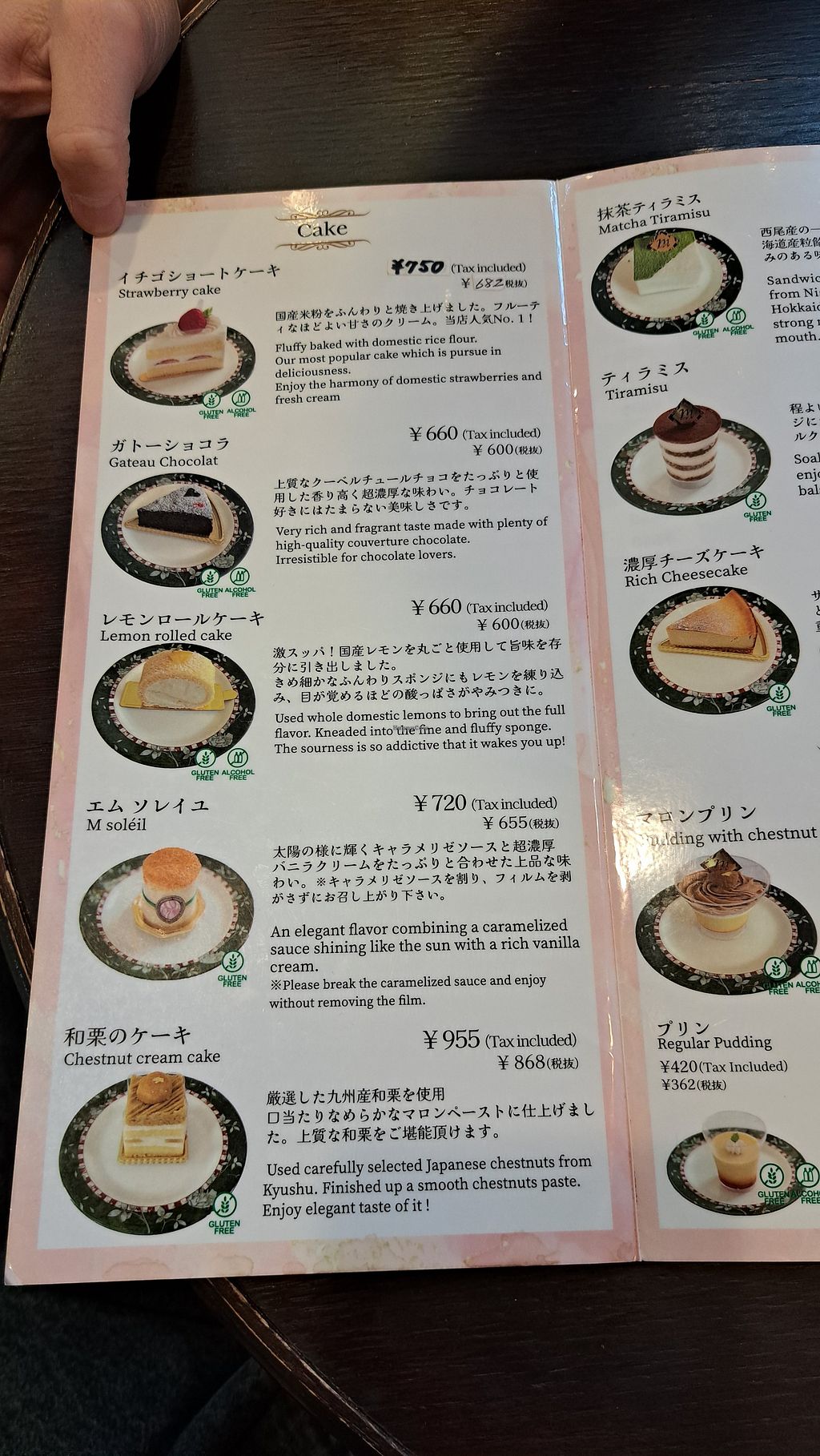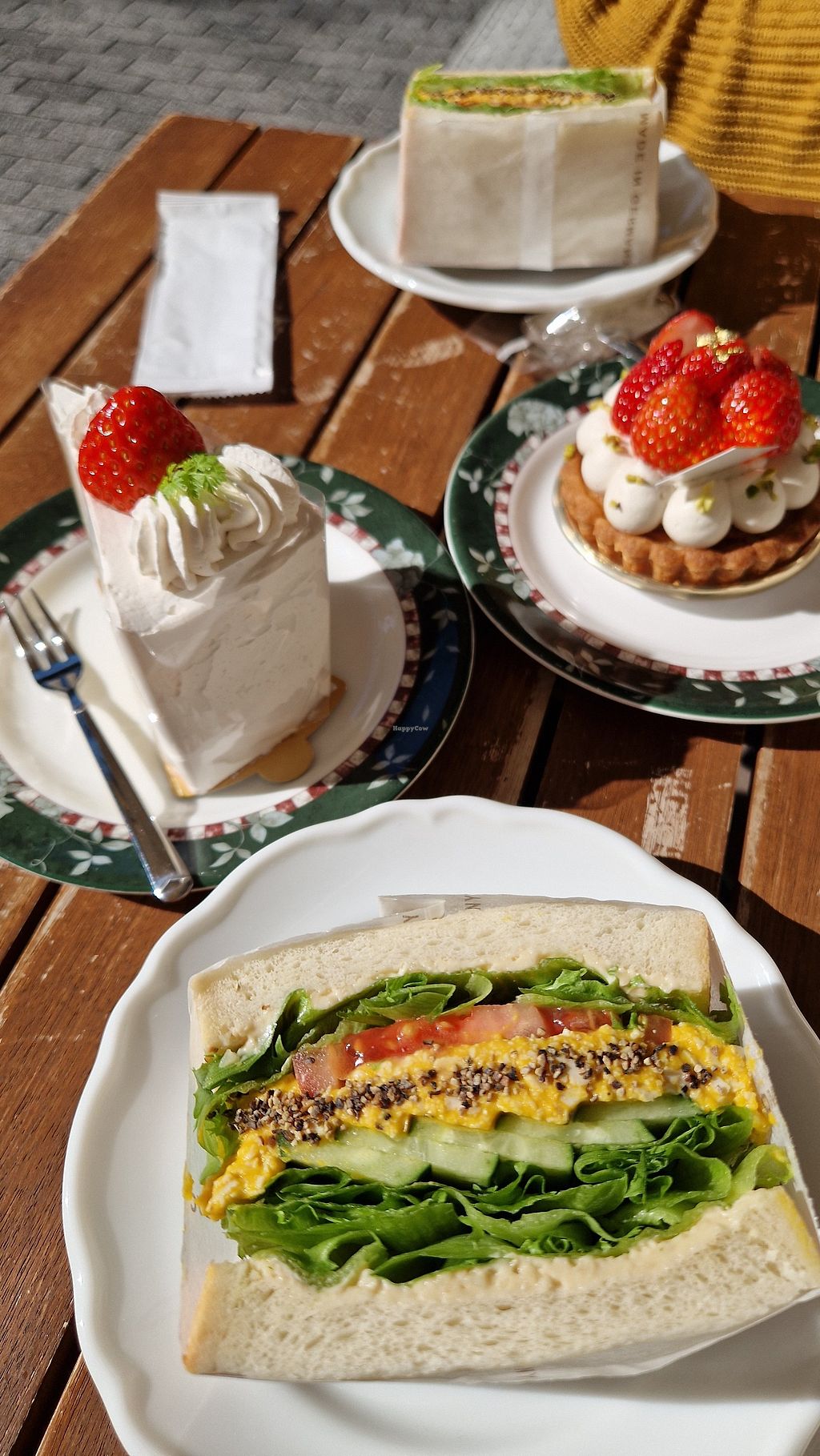 Went for a sweet treat after a lovely morning in Gyoen national garden. Lots of different options & lovely staff. Got the strawberry cake which was lovely! Very light and tasty. Also got a vegan egg sandwich to take away for later which was lovely too. Would recommend!