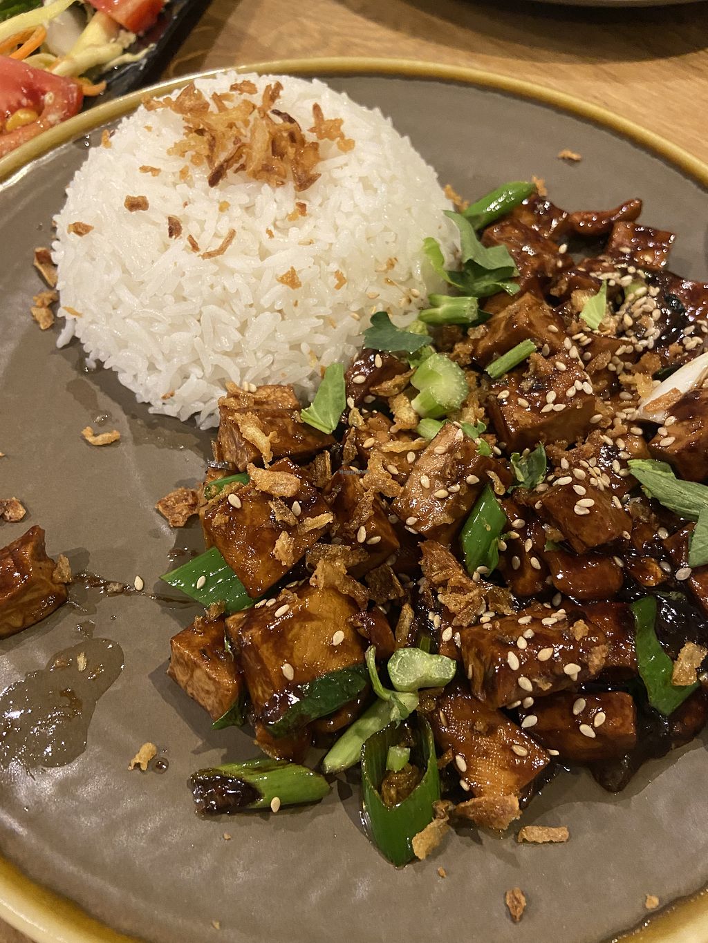 Very pretty interior of the restaurant. Good beautifully presented. Clearly marked vegetarian and vegan dishes and knowledgeable staff so no hassle ordering. We had pad Thai with tofu, noodle salad (spicy!) and another very spicy tofu dish (can’t remember the name) all very tasty.