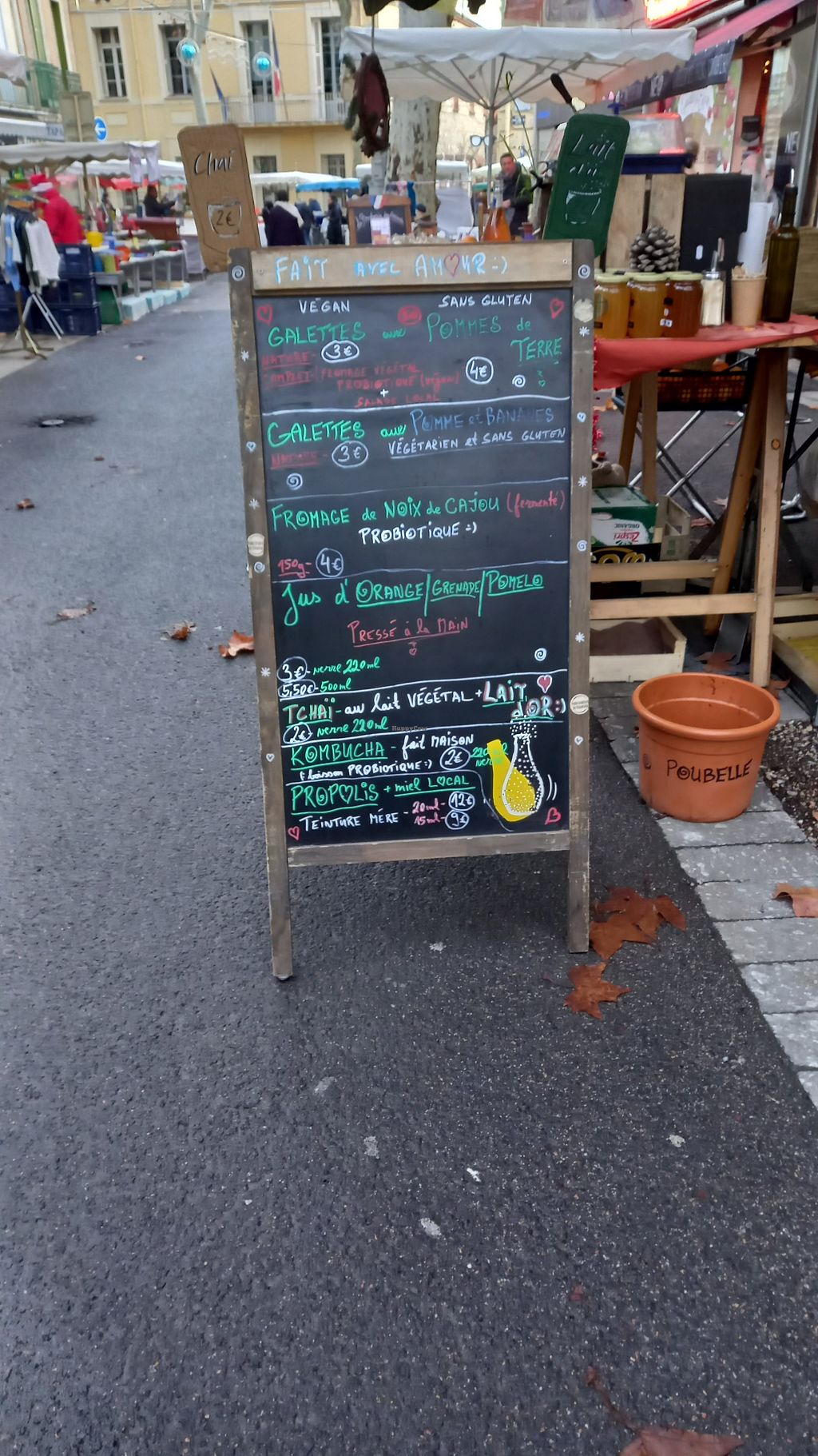 i was surprised by size and offer of this market. you find everything from basic foods, bread and vegan yoghurt to cake and galette. some stalls also sell non-food items like kitchen tools or pottery stuff.