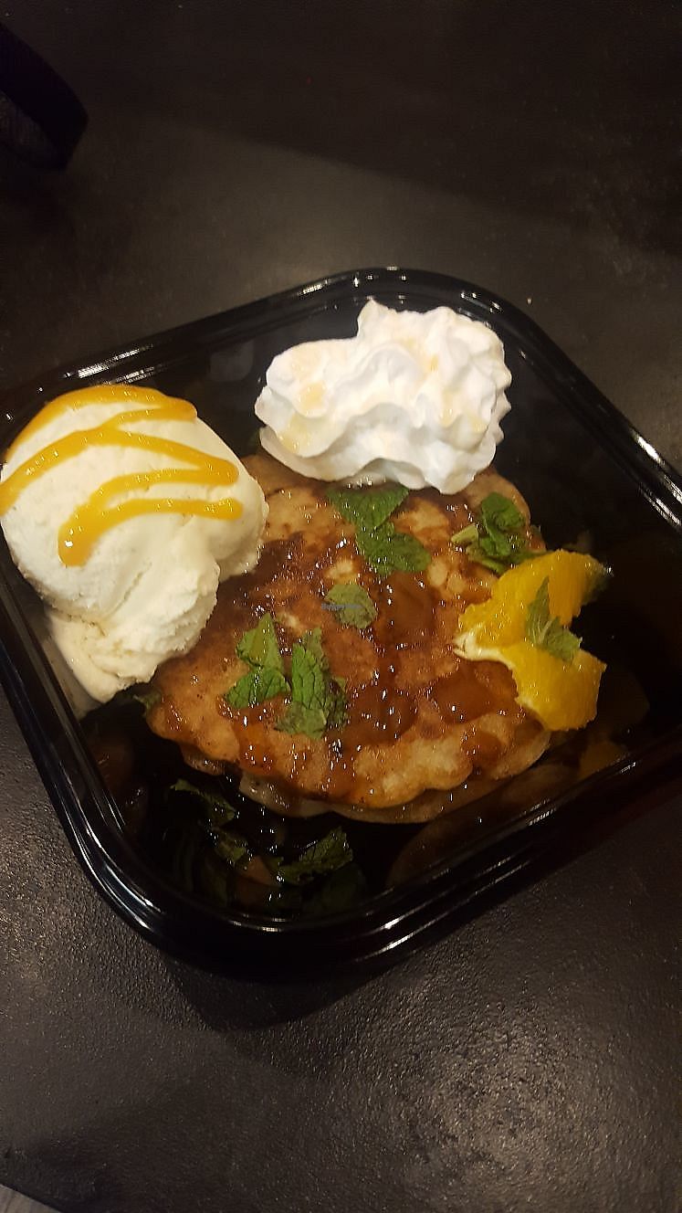 Cinnamon pancakes with vanilla icream and toffee sauce! Yum x