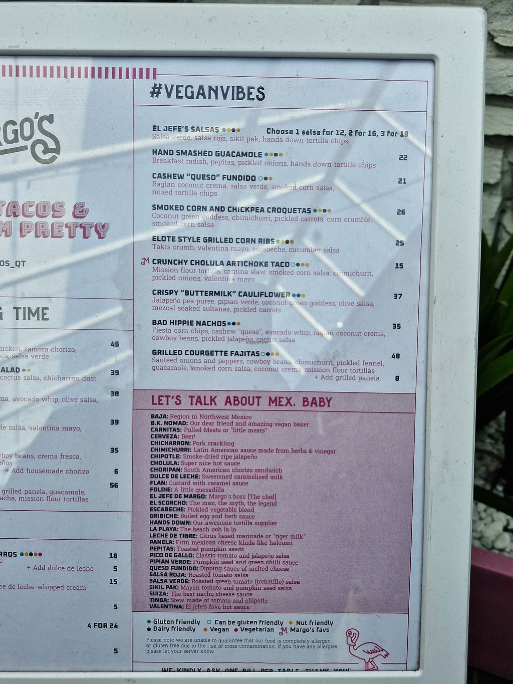 We visited tonight (April 2024), I understand they have recently changed their menu. The food was absolutely outstanding, this is the best Mexican food I have had in New Zealand- particularly for vegan offering.
