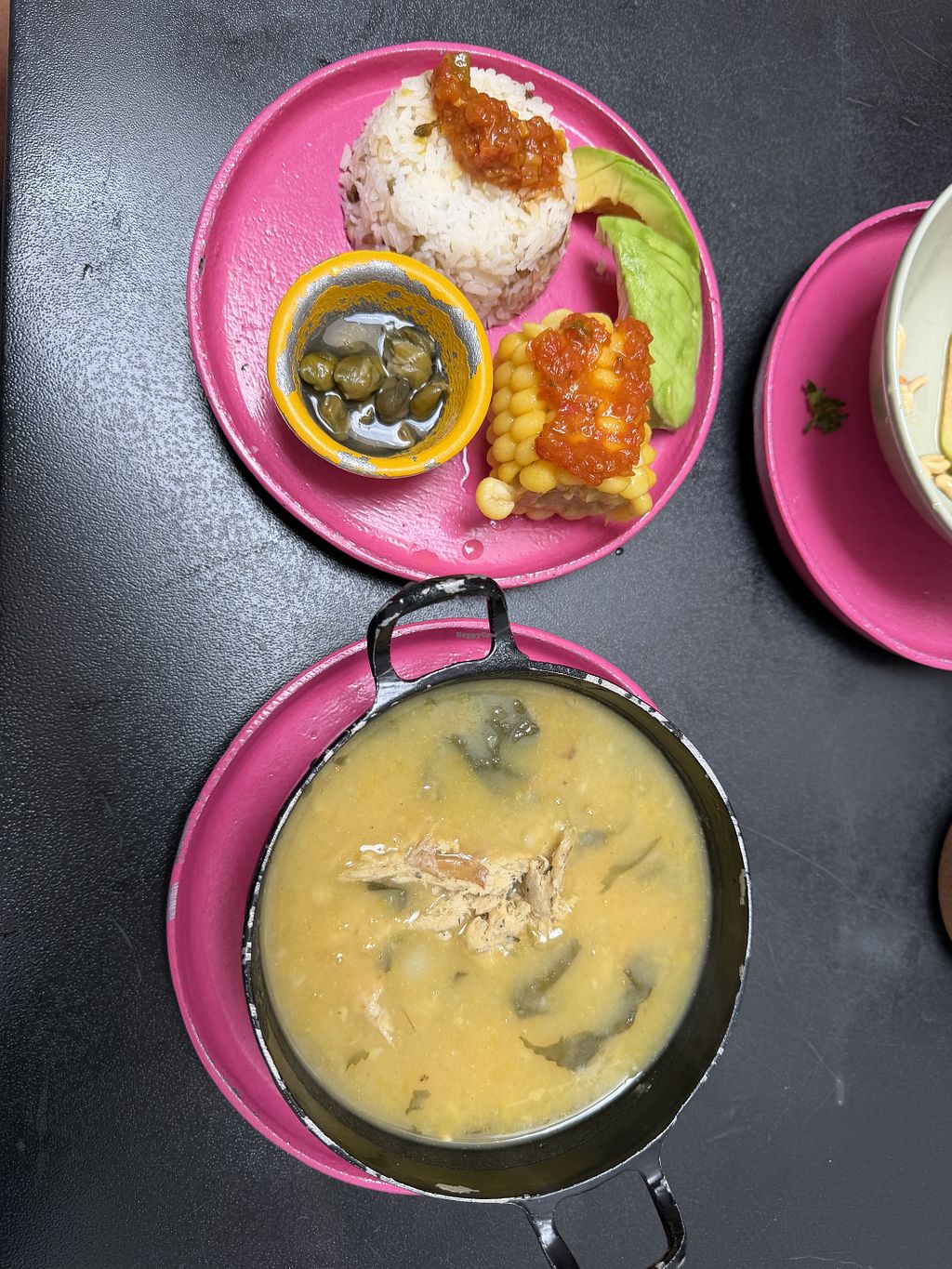 Pedimos ajiaco, mazorcada y empanada. Todo deli, además del jugo de tomate de árbol.