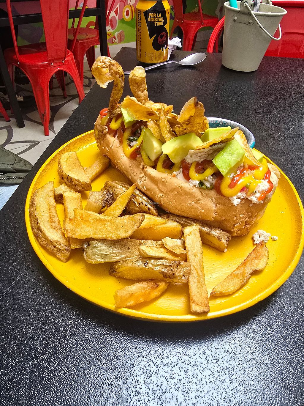 We got the set lunch and then the salchipapas from the menu. Everything was great, the menu of the day was really good value at 19k including soup, main and a fresh drink. Cool decor and friendly staff. (Forgot to take any photos)