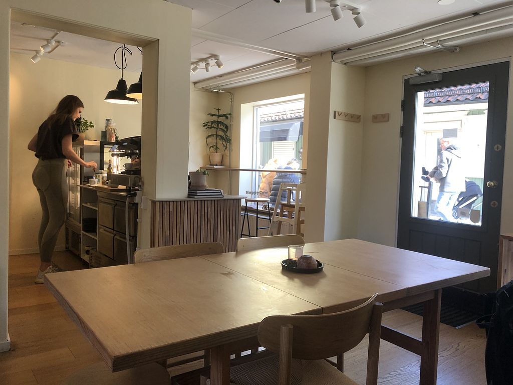 A small vegetarian bakery/café offering a variety of vegan and gluten-free options including buns, pastries, cakes, baguettes and sandwiches. Also serves hot meals provided by Veggokoket such as lasagne, soup, stew and more. Offers vegan, gluten-free donuts on Fridays. Accepts cash. Open Mon-Sun 09:00-16:00. Closed Sun- Tue.
