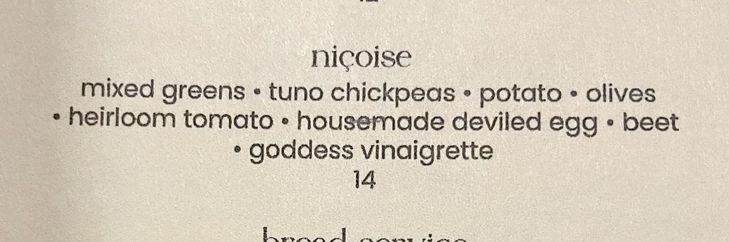 My daughter and I had a wonderful meal there. I’m SOS-free and gluten-free. My daughter eats anything. Chef came to the table to discuss some options he could make me and we chose the Niçoise salad. My daughter did small plates. They even had a non-alcoholic Merlot for me! Overall fabulous.