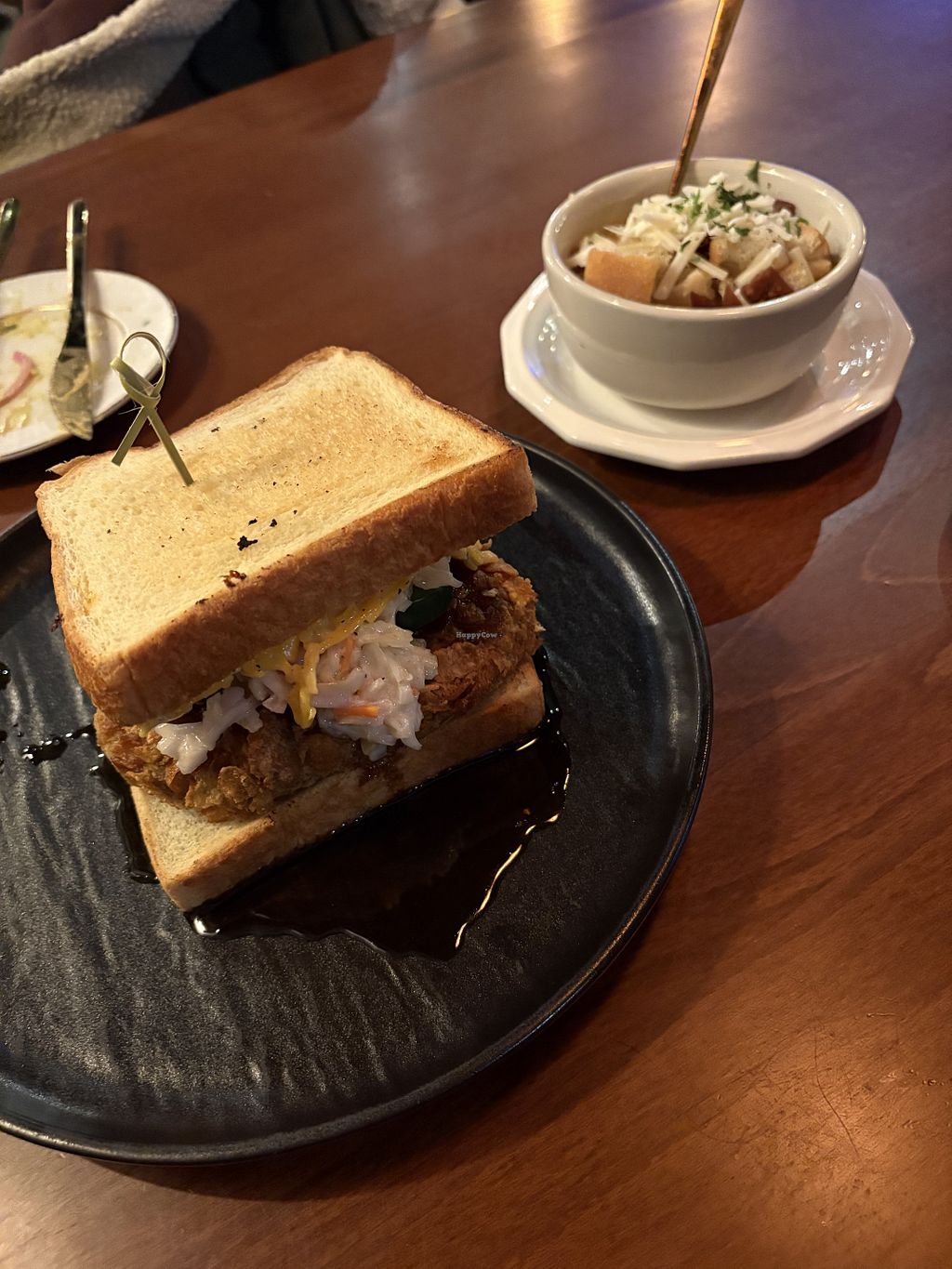 Every part of the experience was amazing—the restaurant’s location and ambiance, the service, and, of course, the food. We ordered the Oshi vegan salmon filet (one as an entrée and another on a salad), and both were fantastic. The French onion soup was among the best we’ve ever had—an opinion shared by both the vegans and non-vegans in our group. We also tried the steak and potatoes and a chick’n sandwich, and every plate was cleaned. Highly recommend.