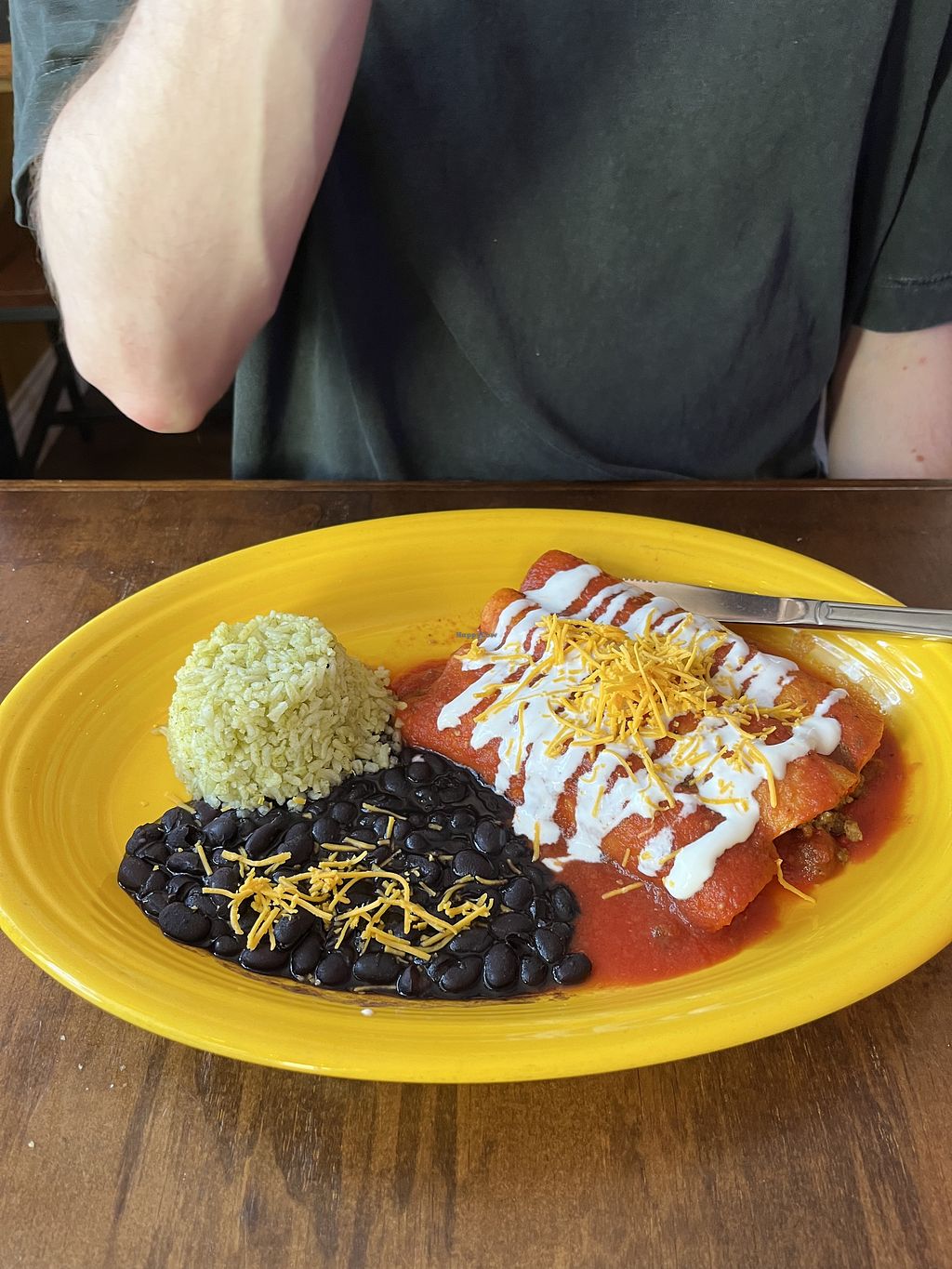 We enjoyed our quesadilla and burrito. At least 5 options with three “meat” choices. Other members of our party enjoyed their food. Servings were substantial. Wine and beer only. Wine margarita was excellent.