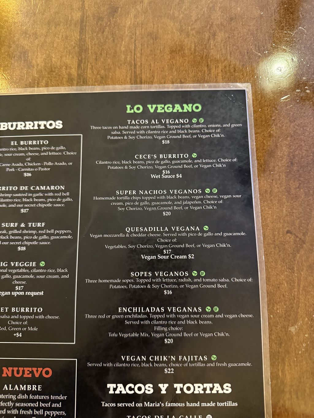 I’ve loved everything I have ordered from this place on their vegan menu! So nice to have vegan Mexican food with all the flavor! So delicious!