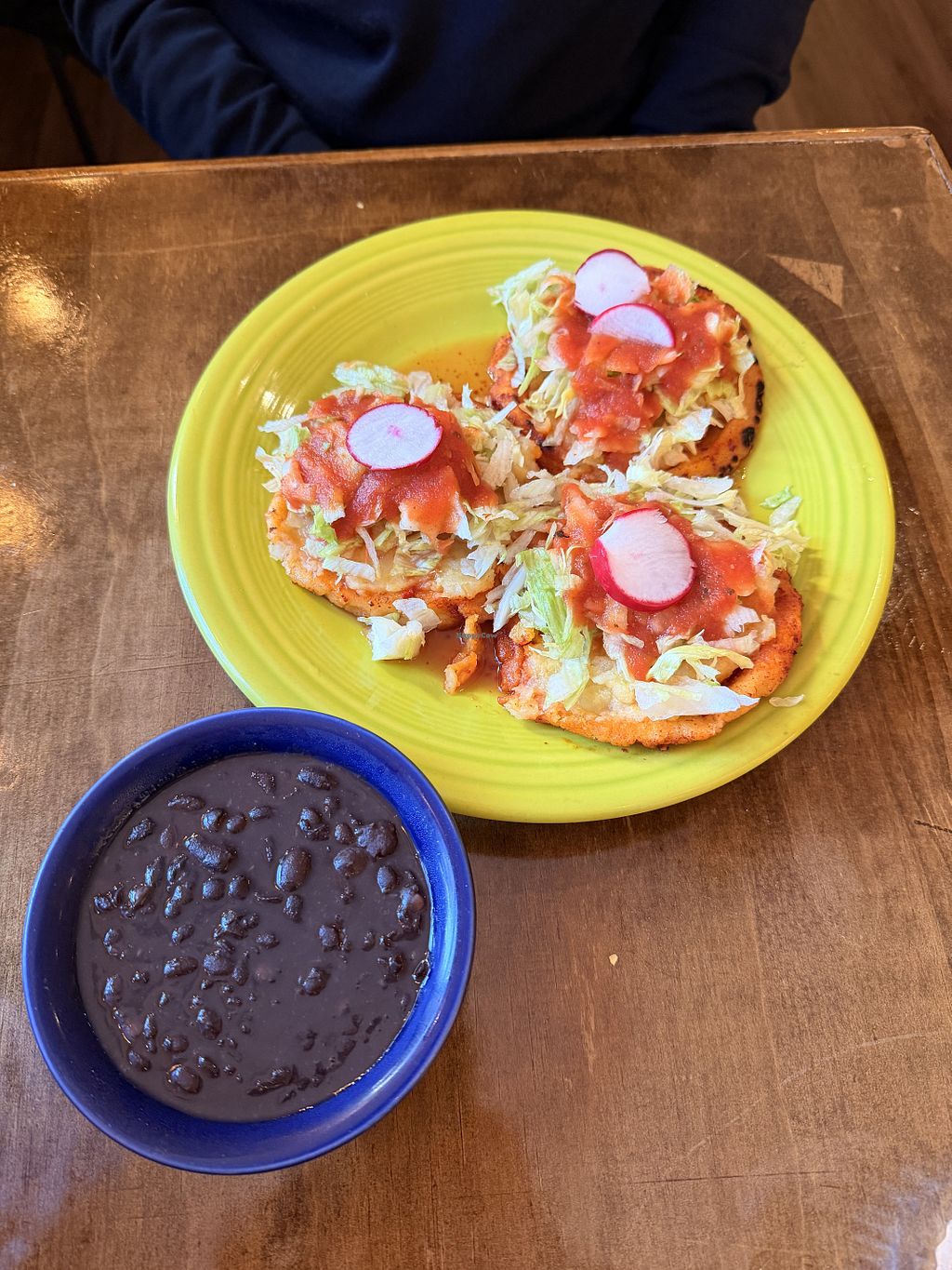 This place was a little out of the crazy crowded part of SLT so that was nice. There’s a decent vegan section on the menu so you don’t have to ask or modify non-vegan items on the menu. The vegan horchata (must specify vegan) was a little watery but I still enjoyed it. Chips and salsa were complimentary (I know some restaurants are moving away from that). I got the sopes with potatoes and soy chorizo and they were really good. Would definitely hit this spot again.