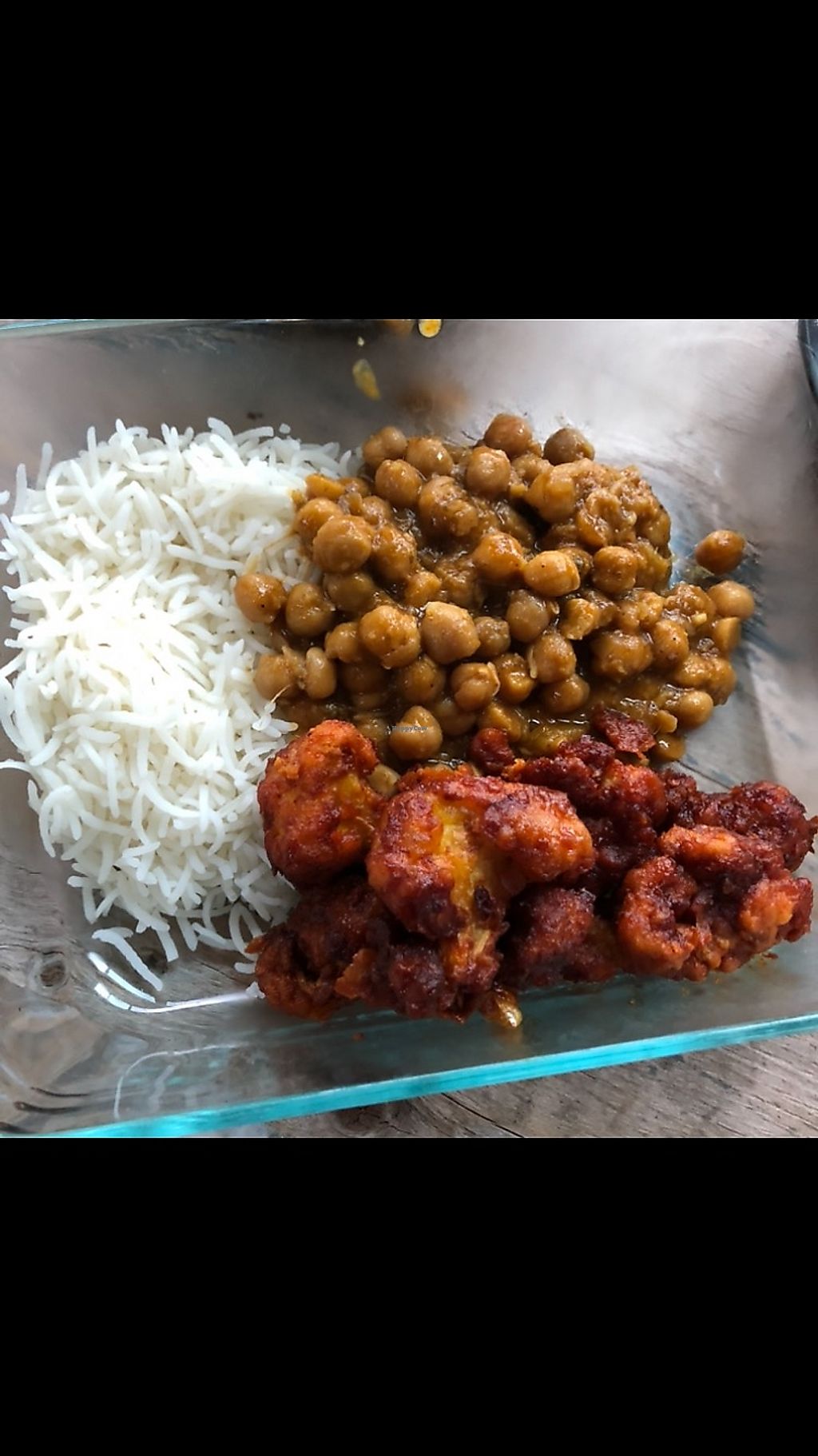 Really tasty thali! We got this to takeaway. Two curries, rice, bread and pakora/bhajis! Would have been nice to have some salad with it too