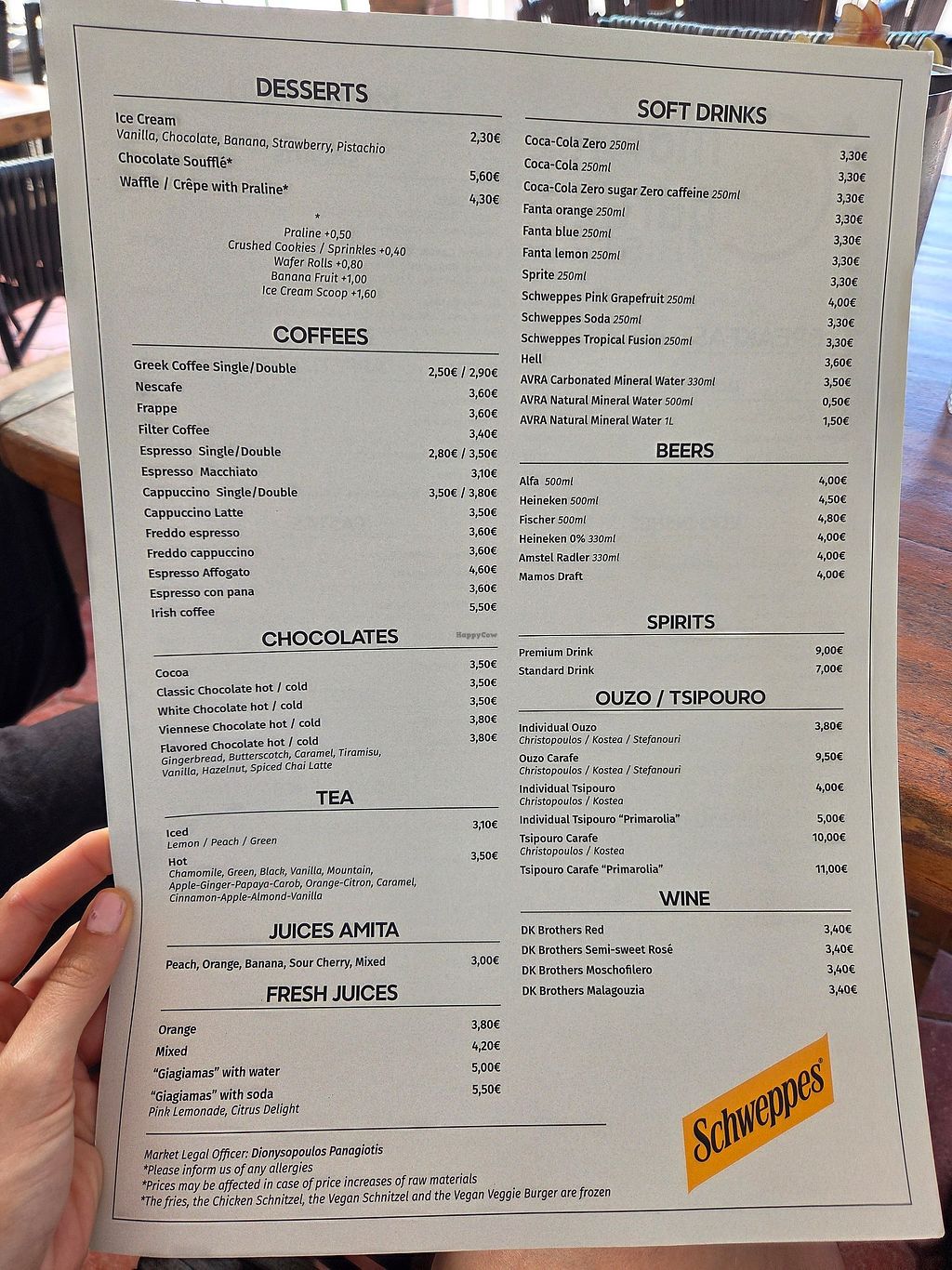 Menu has a few vegan options, I got the vegan pancakes with maple syrup and seasonal fruit. Yum and fluffy. Also had a cappuccino with almond milk!