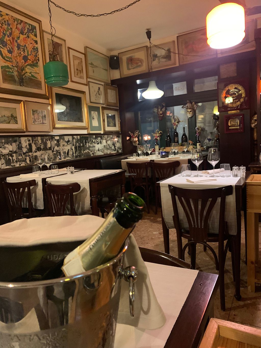 Serves meat, vegan options available. Vegan-friendly Italian restaurant featuring a modern take on classic Venetian dishes. Offers a separate vegan menu complete with appetizers, wine, main courses, and dessert. Example of savory foods include stuffed artichoke, lasagna with potato cream, corn tagliatelle, orecciete with sun-dried tomato and olives, pesto linguine, For dessert try the chocolate cake with cherry gelato on top, apple tart tartin with ice cream, or almond cake with coconut. Fine dining trattoria setting near Rialto, established since 1960. Open Tue-Sat 12:30-14:30, 19:30-22:30.