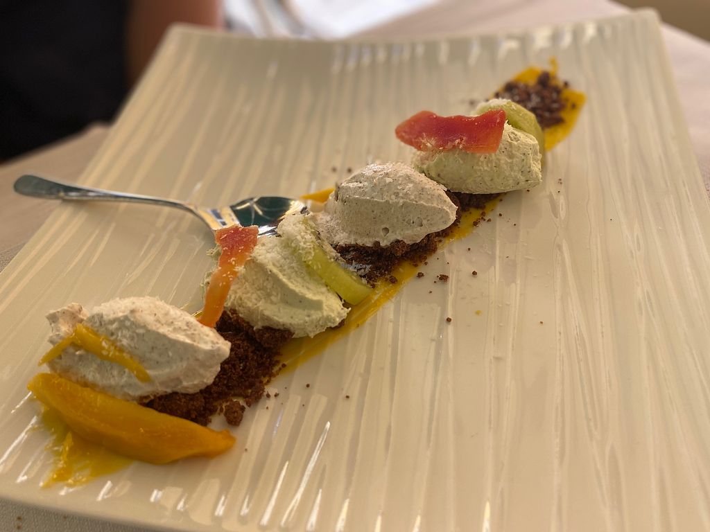 The dessert was incredible vegan chestnut and pistachio mousse with berries - every mouthful was a joy.