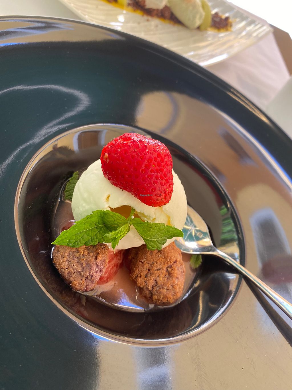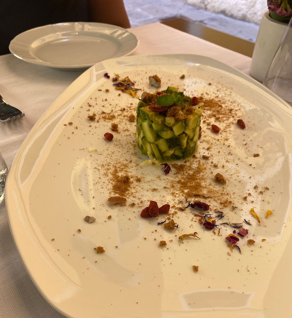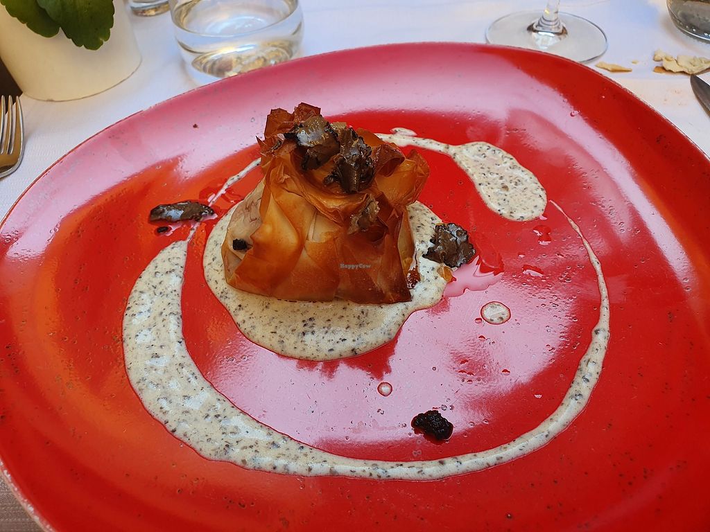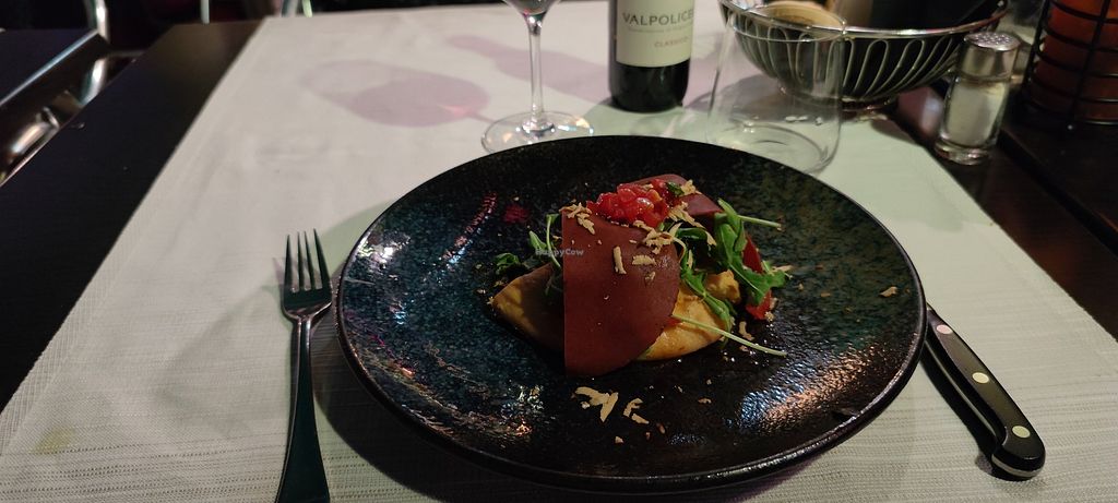 Me and my husband both had the 4 course vegan menu. Some dishes were much better than others. Some dishes were mediocre, like the precourse with zucchini and the two "1 course" dishes that we tried (pasta dish with dill and vegan lasagna). One 2 course dish with foccacia was good but absurd that it costs 21€. However one precourse with zucchini flower filled with pumpning creme, battered and deep fried with rocket sauce, and also one "2 course" dish with filo dough baked beetroot with truffle sauce was delicious. Desserts were good but not overwhelming, strawberry sauce with ice creme and vegan cookie or rubarb and banana creme cheese crema/ice creme with some fruit.