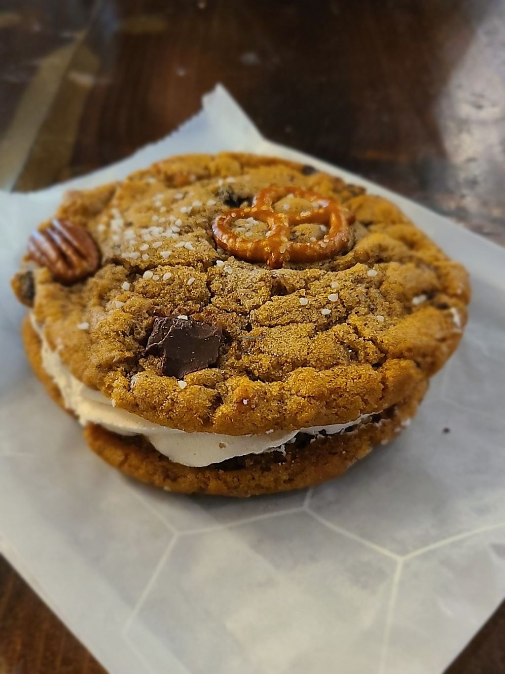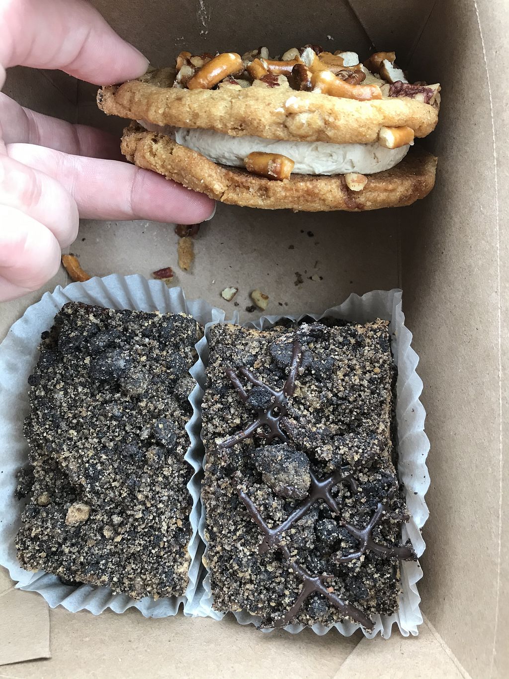 2 whipped peanut butter death bars and a peanut butter cookie sandwic…
