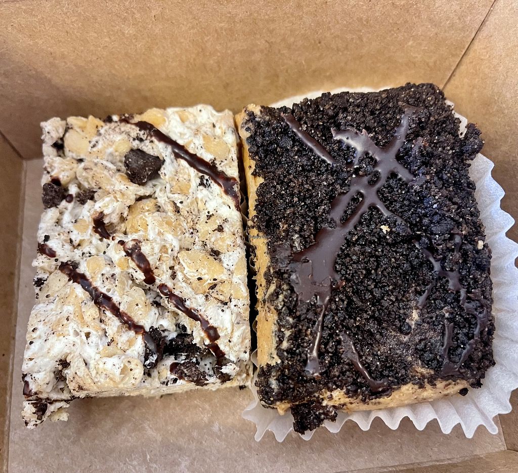 Death bar: brownie base, peanut butter, with Oreo crumble topping
