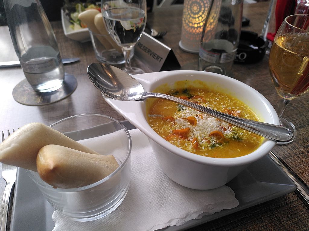 Read moreWe enjoyed the vegan coconut soup a lot, it was very tasty. The salad was okay and one of the more tasty ones we had in the area but not that special. For the main dishes we had the noodle dish from the vegan section of the menu, and they created a pasta dish with the local mushrooms (pfifferlingen). Both were tasty and clearly freshly prepared.