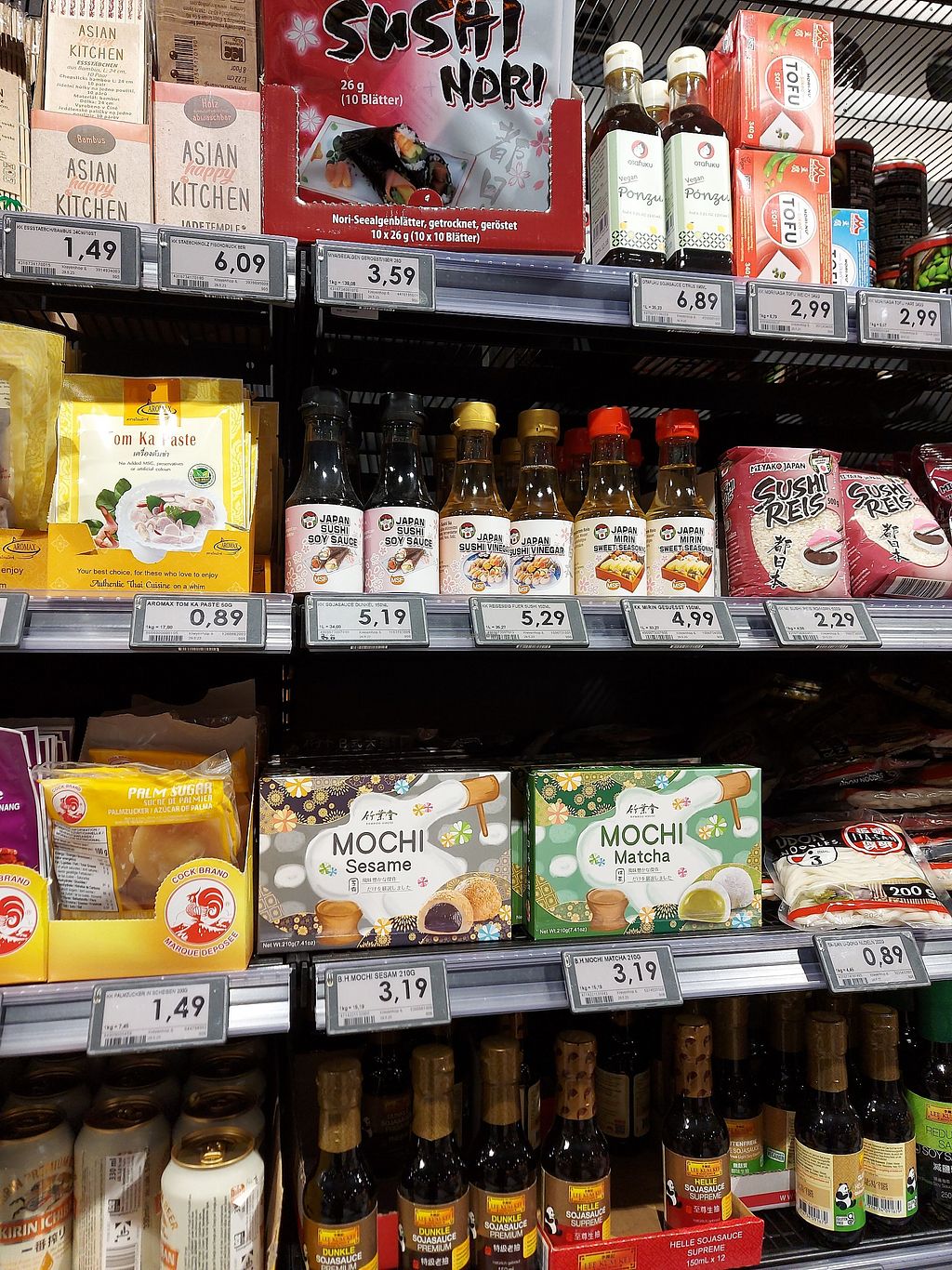 Spacious and modernised grocery store. The fresh produce section is beautiful! The layout of the store is a bit strange but take your time and you'll find they have a great deal of selection for us. I went there specifically to see the vegan counter (shown in previous review) which is such a fascinating and rare thing for me. The selection was not as nice on my visit and we didn't buy anything from the counter, but I appreciate that a space for us even exists when usually, I stay faaaar away from this section of the store. I found quite a few not-found-at-my-usual-edeka items, including Vegan kimchi, mochi and gyoza. Their international selection in general seems pretty good and there are very many intentionally and accidentally Vegan items throughout the store. It's definitely worth a visit just to poke around and see what you can find. An additional note, although it was fairly busy that day (Dec 20th mid-day), the store is so large, clean and spaciously laid out that I didn't feel the usual stress and claustrophobia I normally feel in a crowded grocery store (especially during this time of year!)