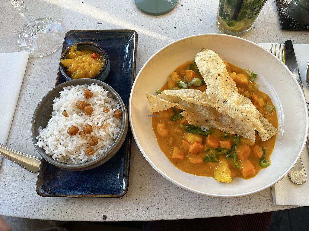 The restaurant offers few vegan dishes such as chickpea curry or vegan buddah bowl. The bowl was nothing special but alright. We also ordered vegan bitterballen and got one with gamba by mistake. Luckily we didn't eat it and they brought us additional vegan ones.