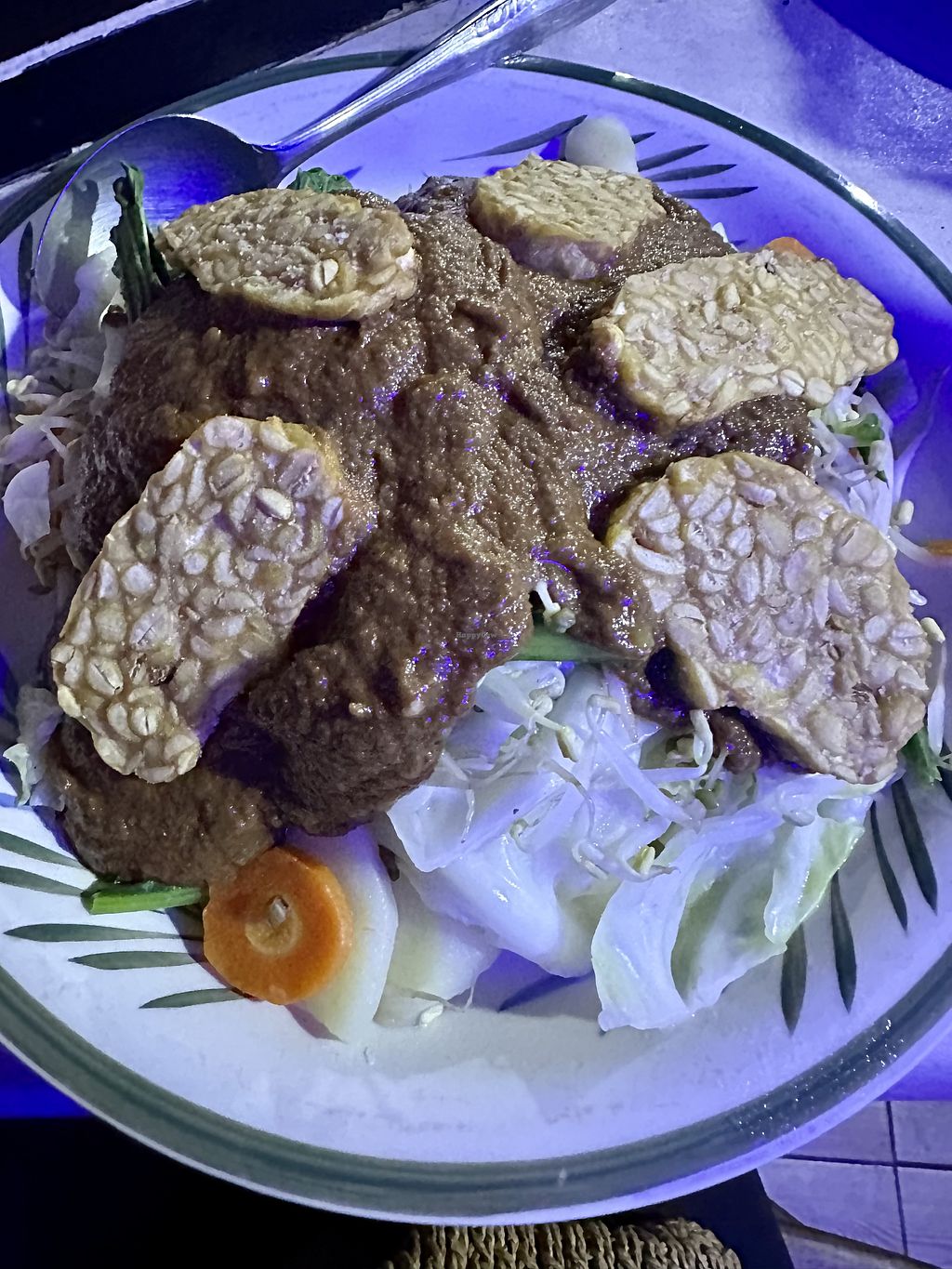 Honestly wasn't expecting more than a quick lunch, but the gado gado here was huge,very varied and delicious. Very impressed. For 30k too! I asked for no egg or chicken and they offered extra tempeh.