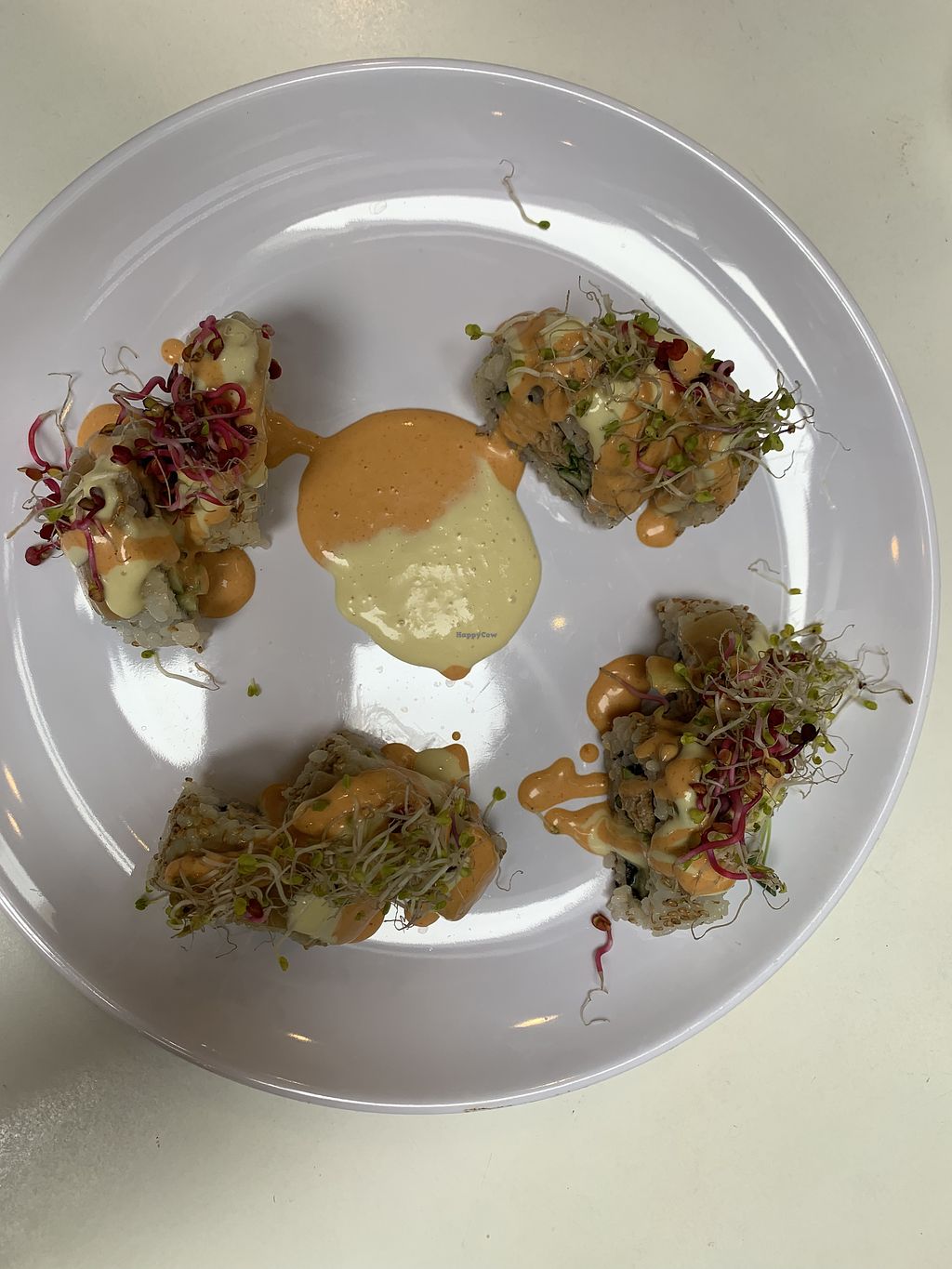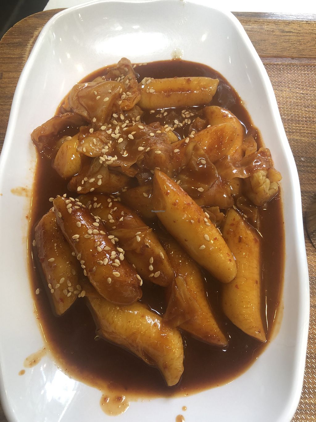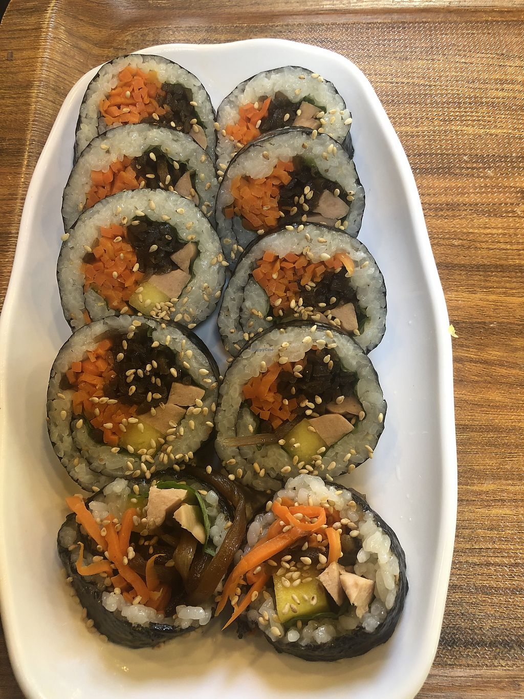 Lots of Korean items made vegan here. We tried the kimbap (good), gyoza (good) and fish cake (gross lol, but I didn’t think I’d ever like it - just wanted to try anyway). The lady cooking the food was nice and helpful. The restaurant itself is a hole in the wall/food truck a with some tables outside. Cute spot (ignore the Loving Hut propaganda)