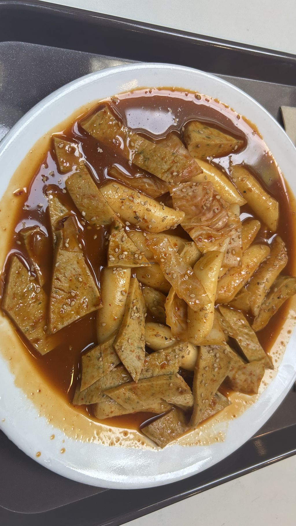 I got the rice cakes, dumplings and fish stick in broth. Everything lacked salt/flavor. Nice if you need a place to snack though.