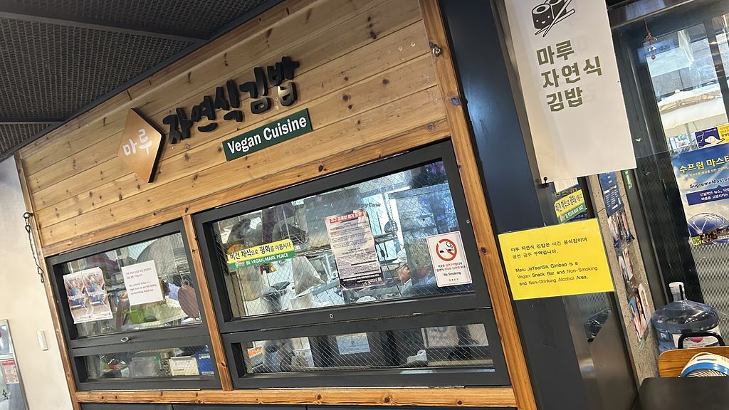 마루 자연식김밥 is a traditional Korean restaurant in Insadong serving bunsik, kimbap, udon, dumbling, stir fry spicy rice paste (TTeok), fish cake soup, and more. Occasionally closes at 5:00 pm (twice a month 1st and 3rd Wednesday.) NOTE: Has signs associated with Loving Hut. Open Tue-Sun 10:30am-7:30pm. Closed Mon. Last order 7:00 pm.