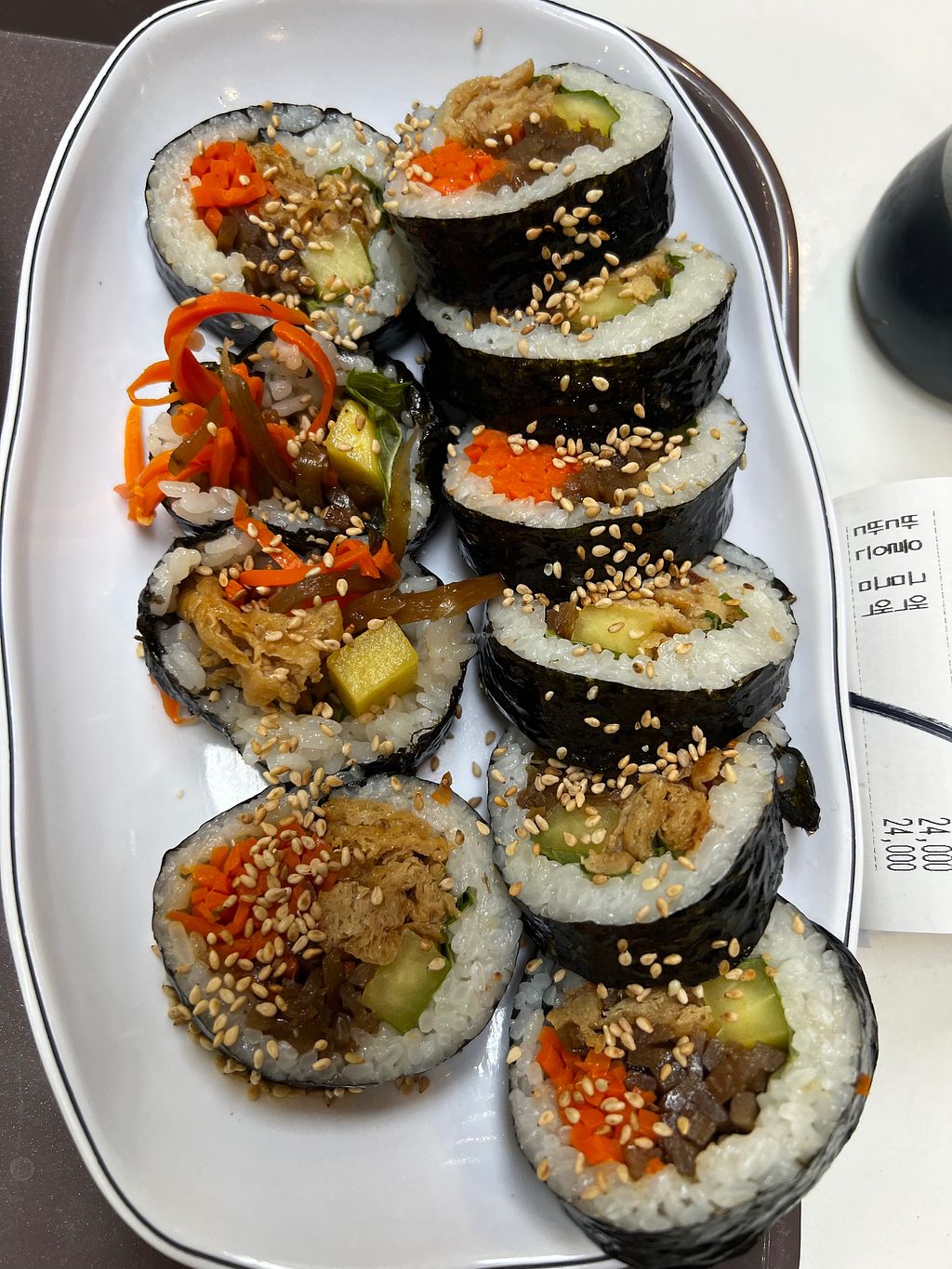 We’ve found vegan food quite hard to come by in Seoul without good planning, so we really enjoyed our lunch here to try some Korean classics. The gimbap was very tasty, the bibimbap was good too, but we enjoyed the gimbap more.