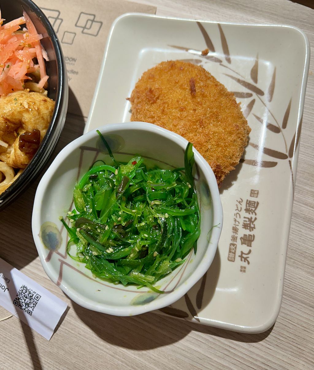 I tried to order all the vegan option but one wasn't available. The curry udon was really good and if you're a vegetarian get an egg with everything! The croquettes were mid and I wish the tempura was warmer but they just sit outside on the side. Would go again for sure though for the price.