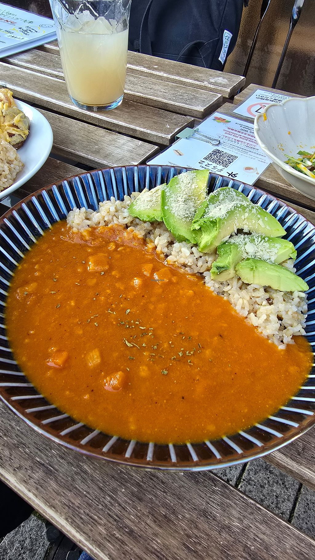 Lunch plate tempura veges, curry and bean ‘meat’ balls