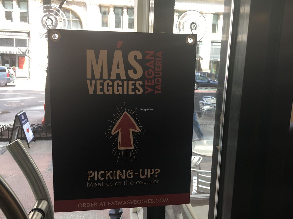 Más Veggies Taqueria/Veggie Grill is one restaurant with two menus. Their printed menu has both - one on each side. So you can order Taqueria on site and dine in as well as for Veggie Grill. The food was fine.