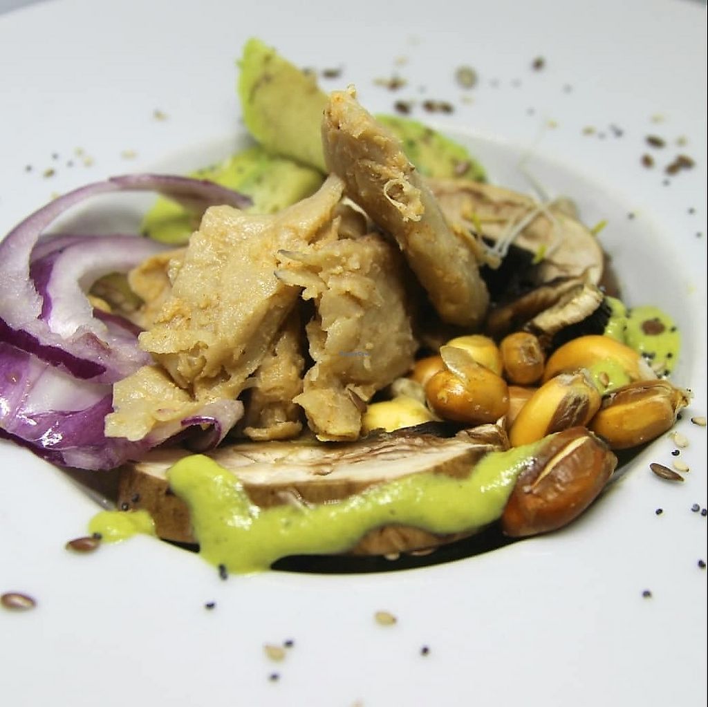 Ceviche vegano con salsa ají amarilla. Rico rico