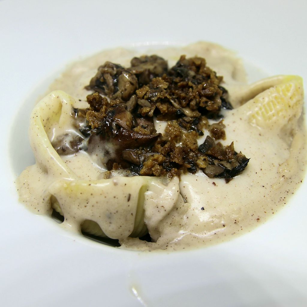 Raviolis rellenos de setas con bechamel de mostaza dulce