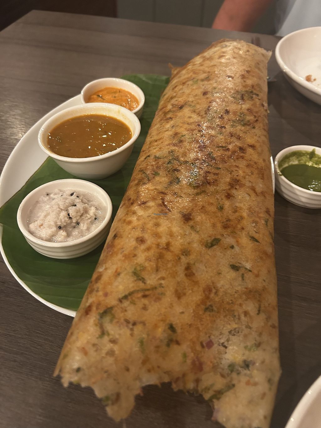 We really enjoyed our meal here. We were indecisive (as usual!) so shared one dal with rice and garlic naan and the tofu dosa. All was really delicious, particularly the dosa with the accompaniments. The staff were very attentive and noticed we needed a knife to cut the dosa in half and brought one over before I even had the chance to ask!