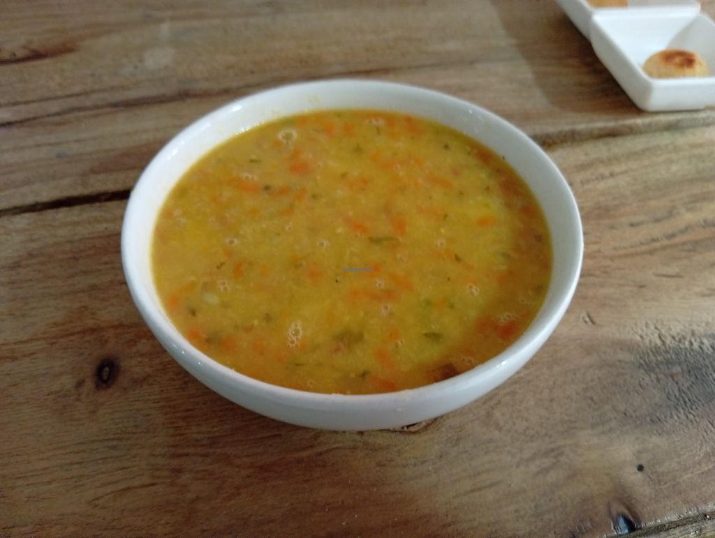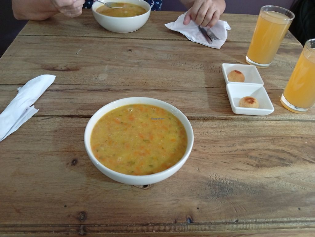 Almuerzo del día. Sopa de lentejas rosadas, arroz integral con maíz, p…