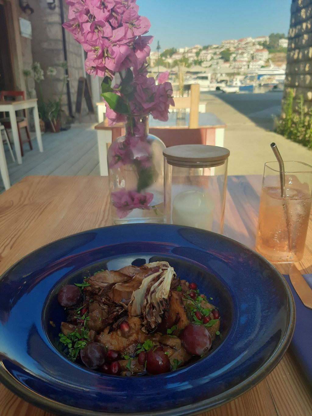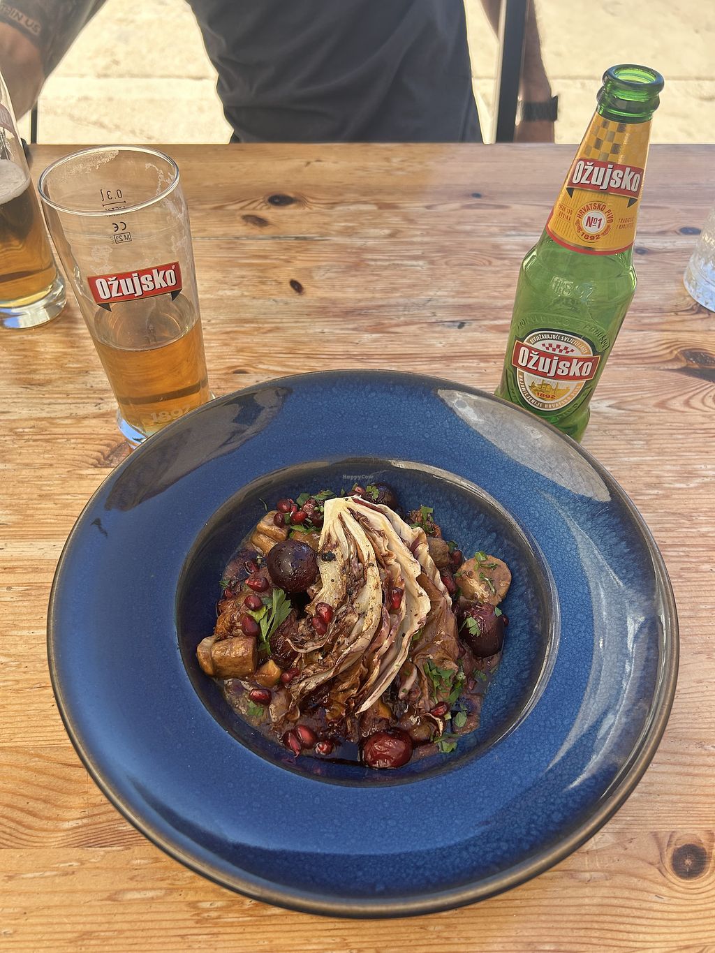 Vegan steak with grapes and pomegranate