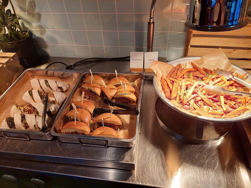 The all-you-can-eat buffet is totally worth it. You can grab burgers, fries, and a bunch of different veggie and salad options. So good!