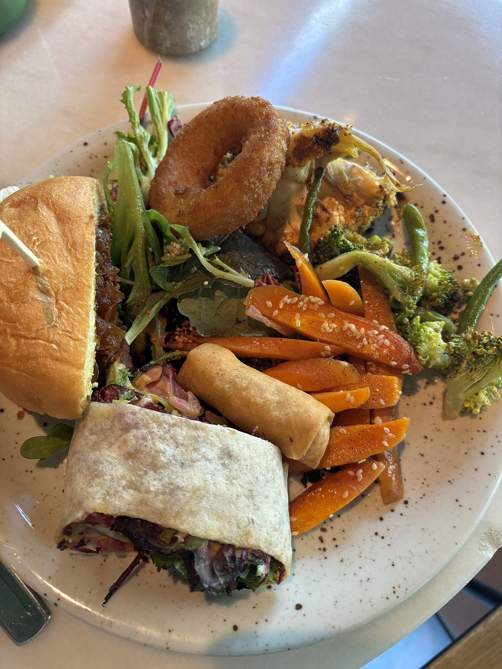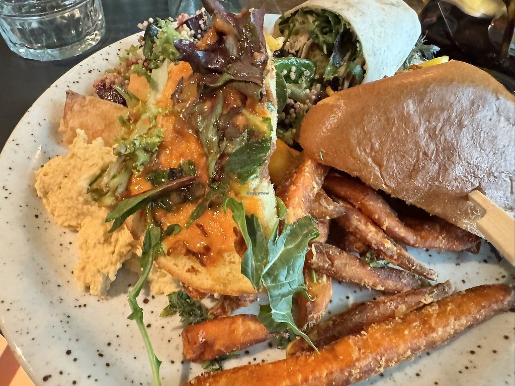 Eat all you want 100% vegan buffet. Lots of selection including sweet potato fries, burger, wraps plus lots more healthier things. All really fresh and nicely displayed. Forgot to take a photo, but it was all delicious!