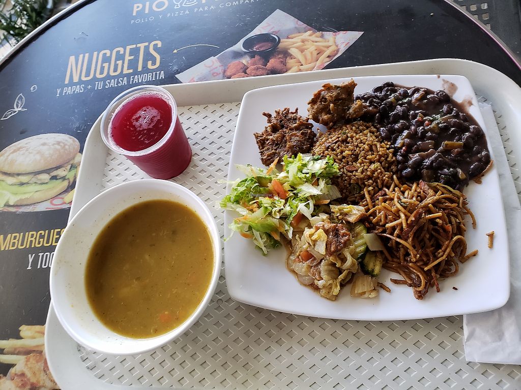 This place is located in the upstairs food court in the shopping center called Centro Comercial Monterrey. It's located next to the Poblado metro station. I went in January 2016 and the meal of the day was 8500 pesos. Grab a tray and silverware over to the right and point to what you want. You choose either "oriental rice" or "oriental spaghetti", three side dishes, one of 2 salads, and then pick up a bowl of soup and choose a drink type and then pay. There's a list of drinks available in front of the cash register. The day I went, I chose the oriental spaghetti, black eyes peas, a slice of "meatloaf", mixed veggies and the cucumber salad. The soup was plantain soup and I got the jamaica drink since it didn't have sugar added. I thought the food was pretty good, especially for the price and the neighborhood. The mall is filled with electronics stores. Recommended to anyone who is in the area.