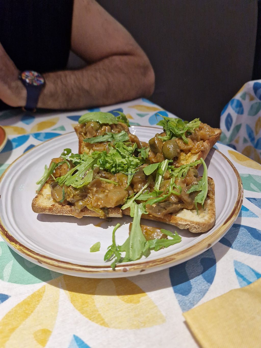 Recomendamos la Capponata de berenjena y la pasta con seitan.