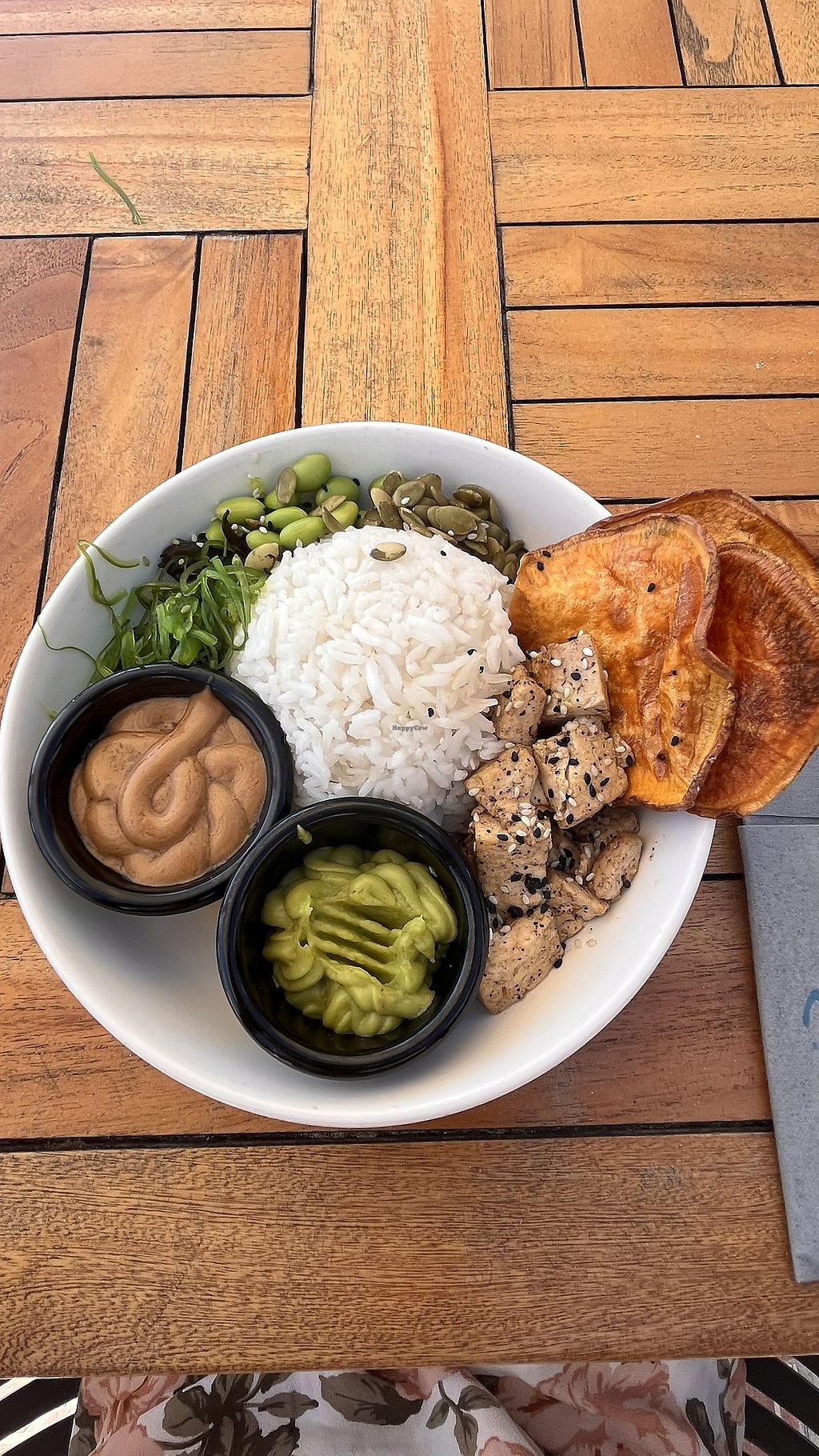 The tofu bowl is decent! The atmosphere is great. Right on the beach.