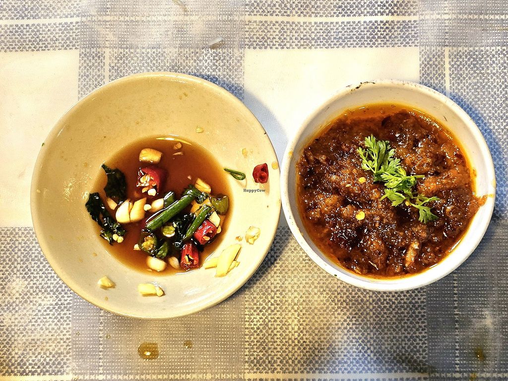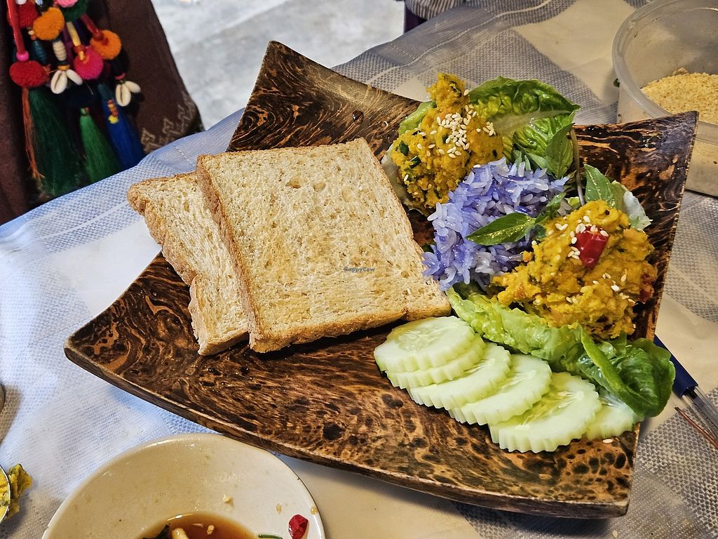 Vegetarian and vegan Thai cuisine eatery. All food is vegan but eggs are available on request. Offers also a few western style food options. Other locations in Bangkok. Cooking school is now across the river with regular hours, but students should sign-up and meet at this location. Moved here in 2015. Reported open July 2022. Open Mon-Fri 11:00am-9:00pm, Sun 2:00pm-9:00pm.