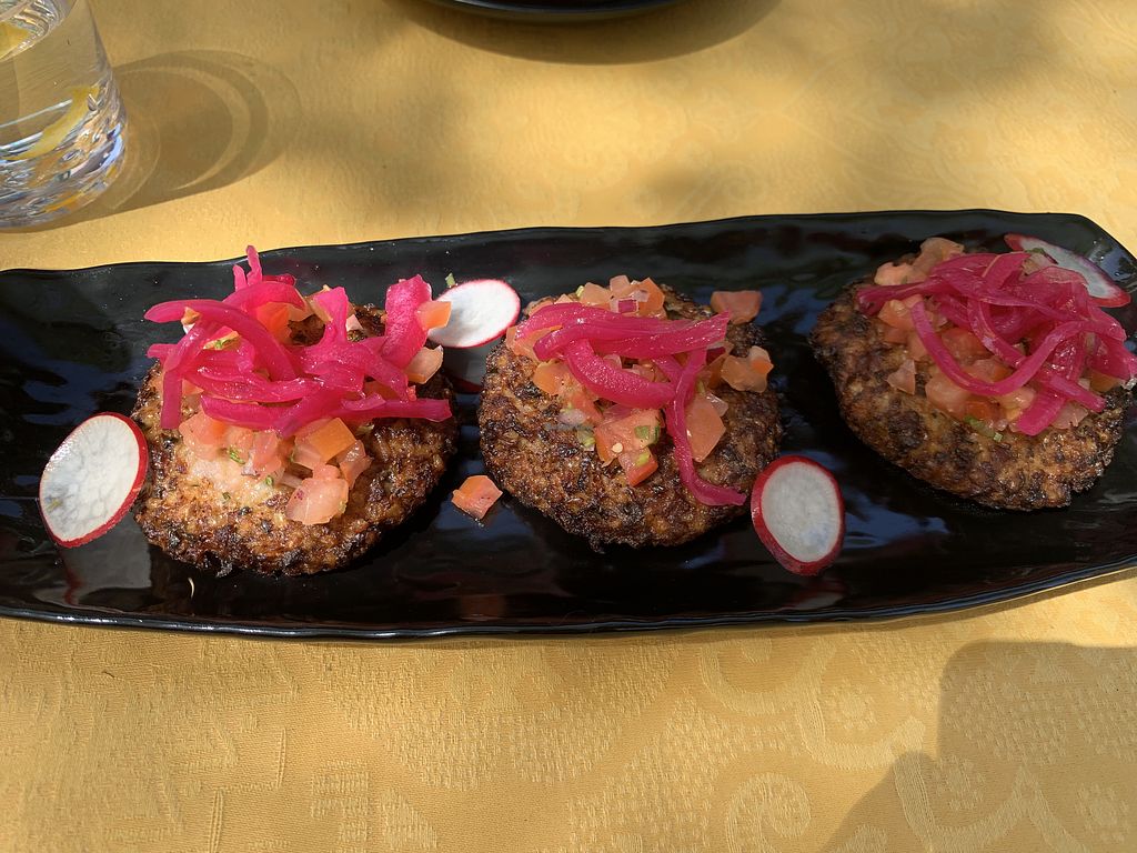 They have a really good selection of vegan food. I basically ordered the entire vegan portion of the menu and had zero regrets. The vegan empanadas were amazing and so was the Bao Bun. My partner loved the vegan kibis but I found it a tad salty but I don’t use a lot of salt so take that with a grain of Um salt. The vegan calamari is made with hibiscus flower and tasted good, the cassava fries were really good. Don’t leave without ordering the vegan cheesecake. The service was amazing. The owner is a very nice lady who is eager to make recommendations and answer questions. We ordered 6 items and got out of there for under $60. I’d highly recommend checking this place out.