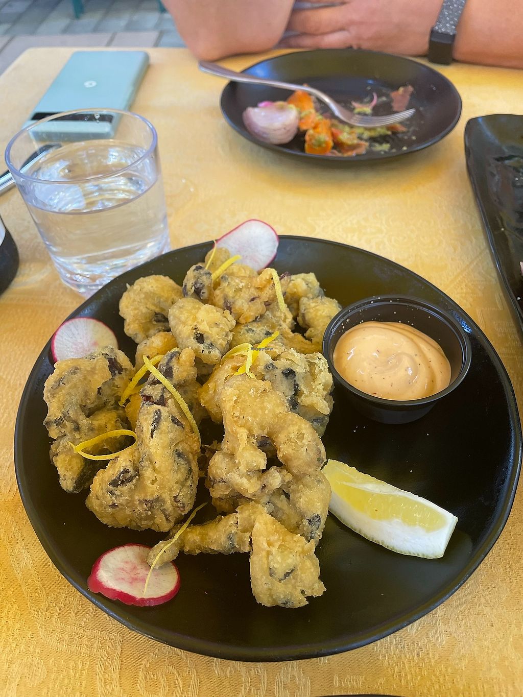 So incredible. 2-3 small plates per person, which lets you try more unique dishes! The “calamari” is more like savory hibiscus lemon fritters with aioli but we personally liked that. The vegan empanadas were definitely the star of the show. Great, clearly labeled options on the menu with and without vegan meats. Knowledgeable and friendly staff. We are sad we didn’t get to try everything because there are SO many options. We will definitely be back!